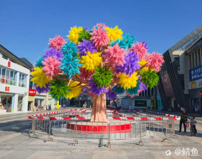 最近在网上看到了万福广场建了一棵像五彩烟花一样的树,刚开始看还以为是AI生成的,后来看了好几篇才知道是真的实物。这种树看起来毛茸茸的,质感好特别,颜色非常鲜艳看着让人心情愉悦。不过也有人讲想起了当年的杀马特风格。