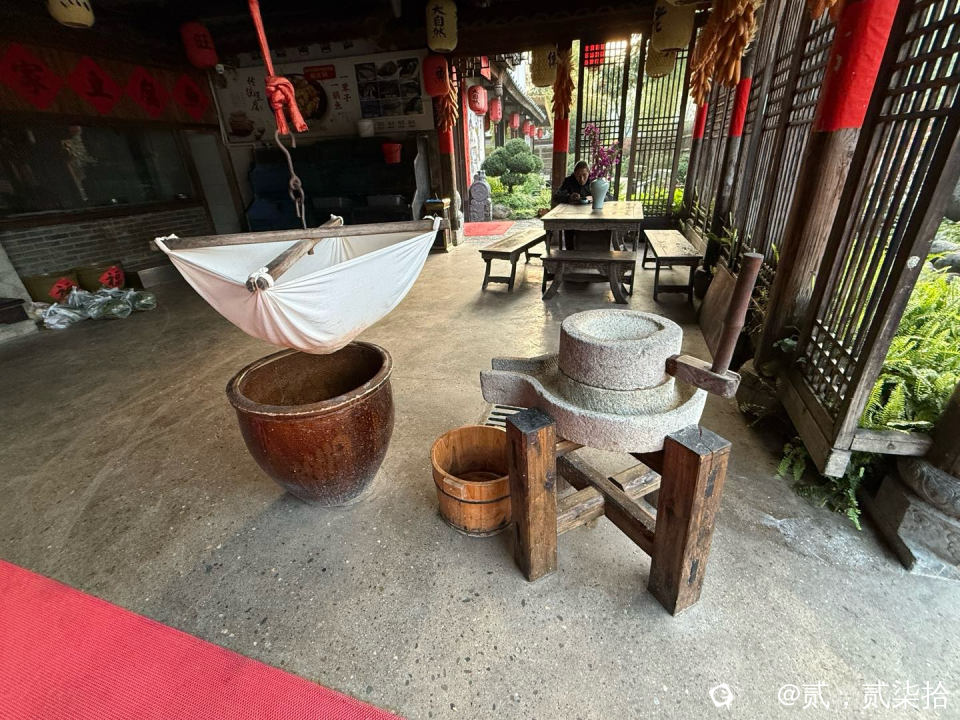饭店门口的石磨,装豆浆的大缸,人生三大苦打铁撑船磨豆腐!现在磨豆腐都是机械化了,自动化了。就没以前辛苦了!