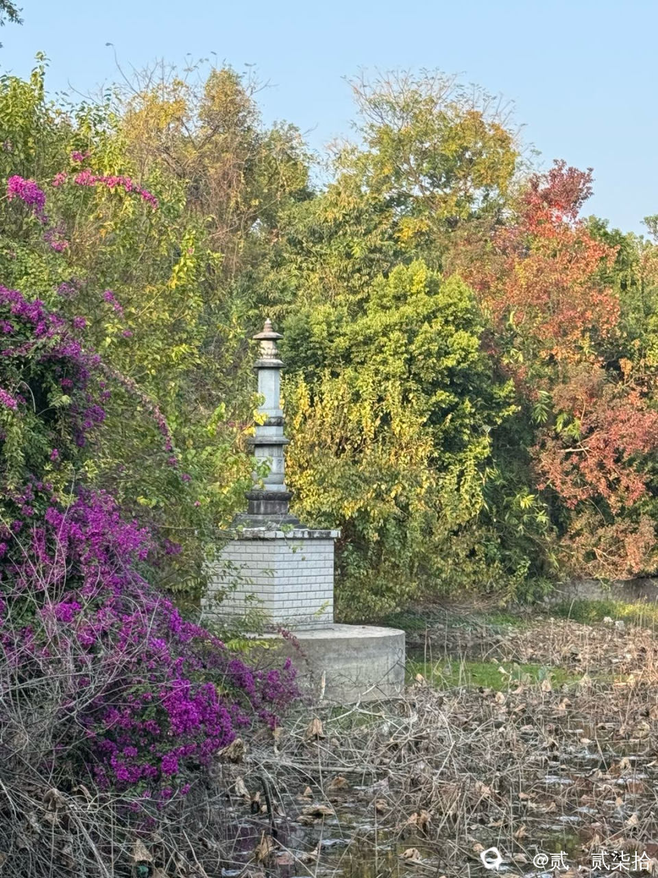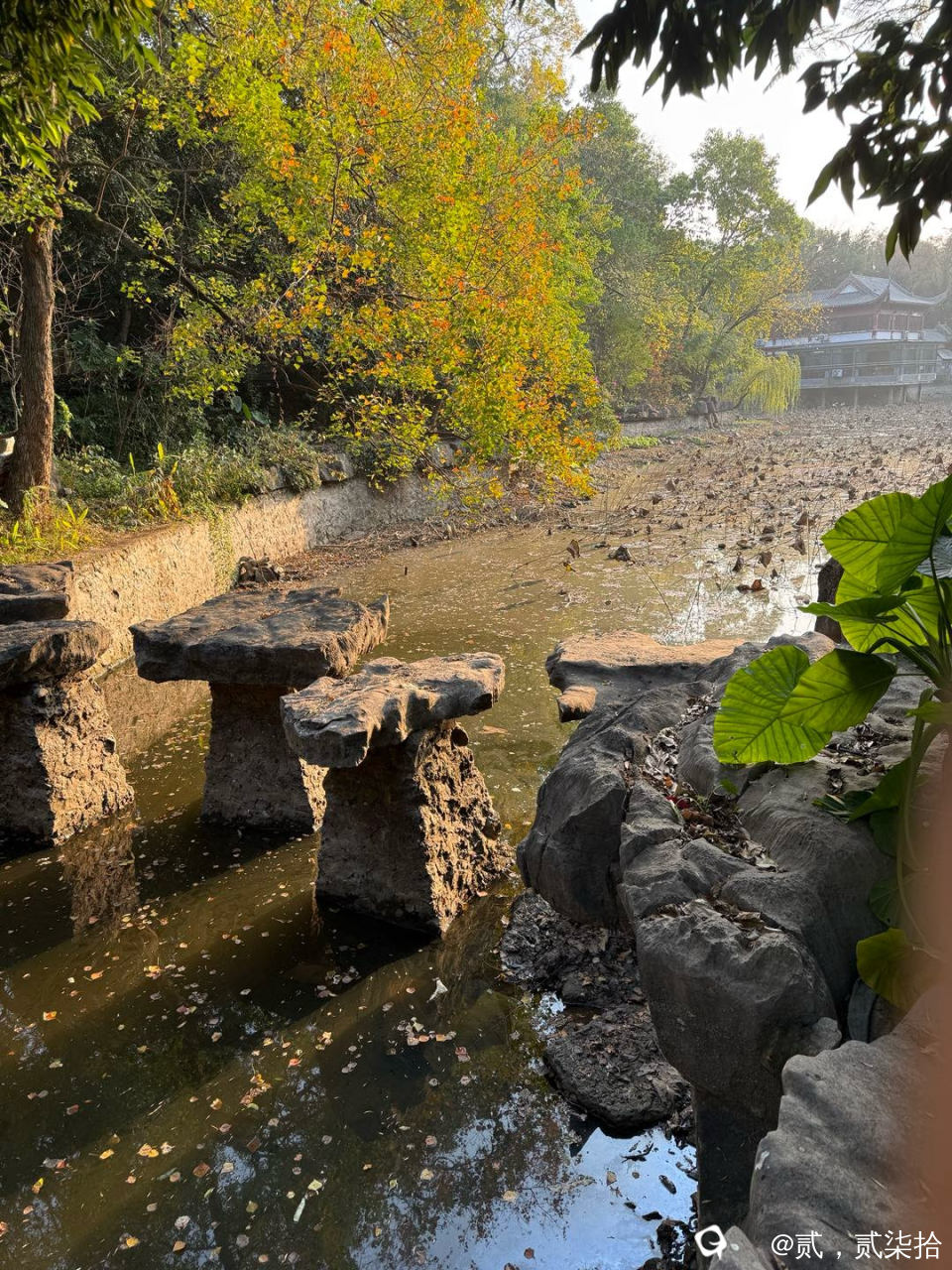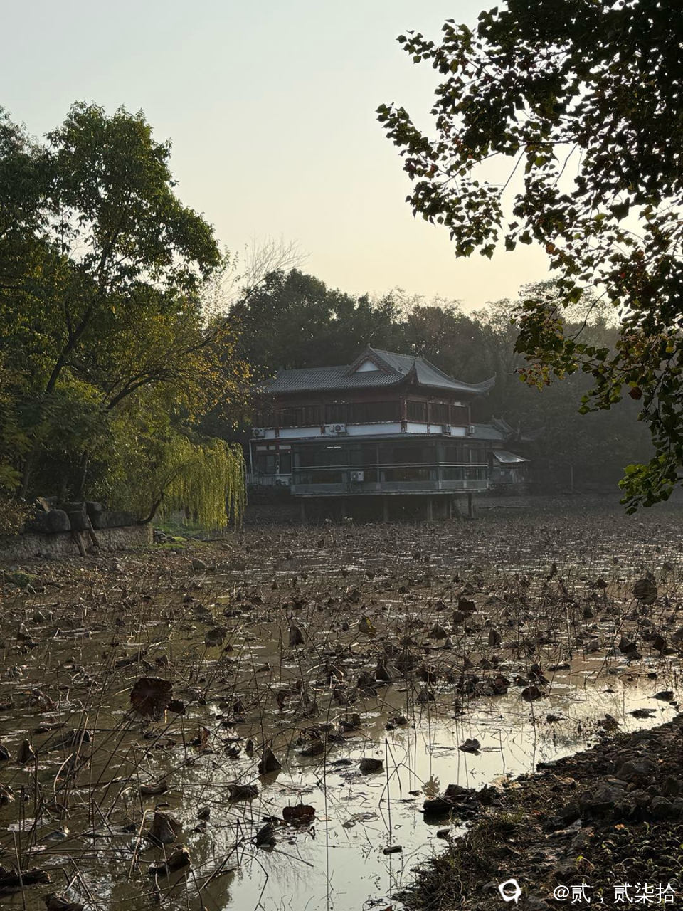 公园对面的荷花池塘。冬天没什么好看的
