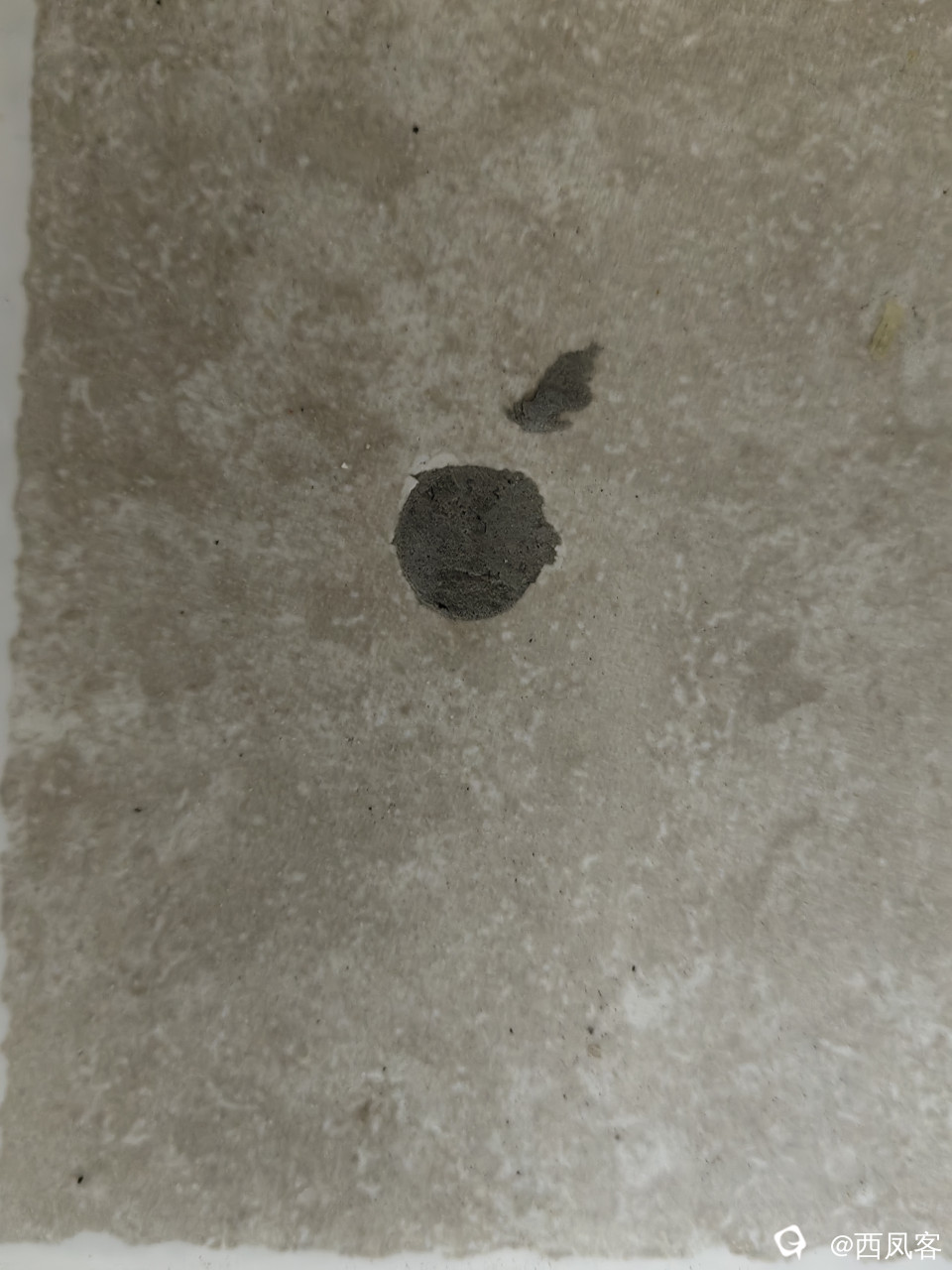 在卫生间地砖上钻了3个洞,液体由此灌入。