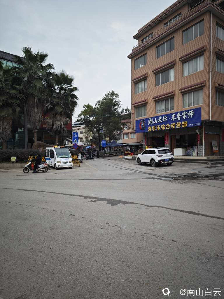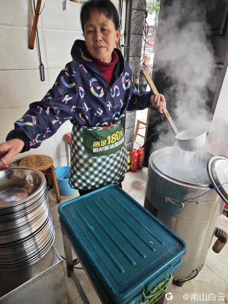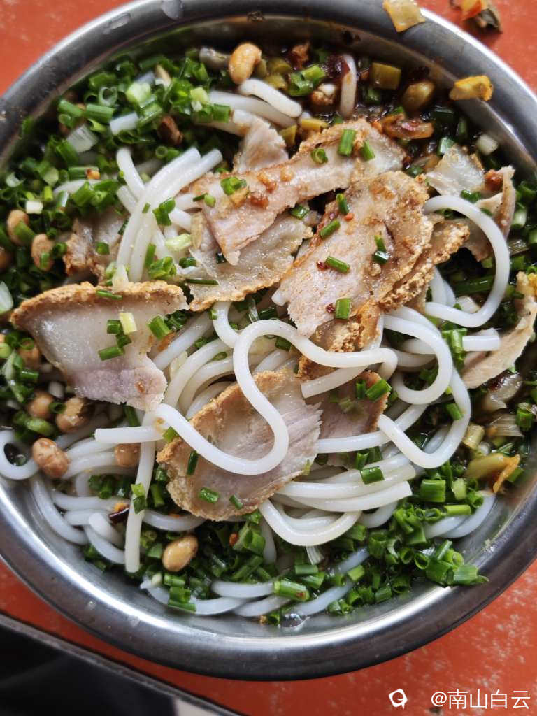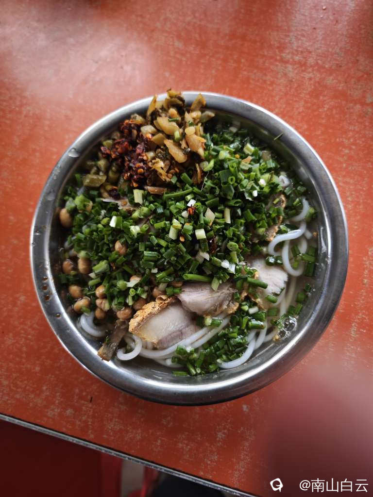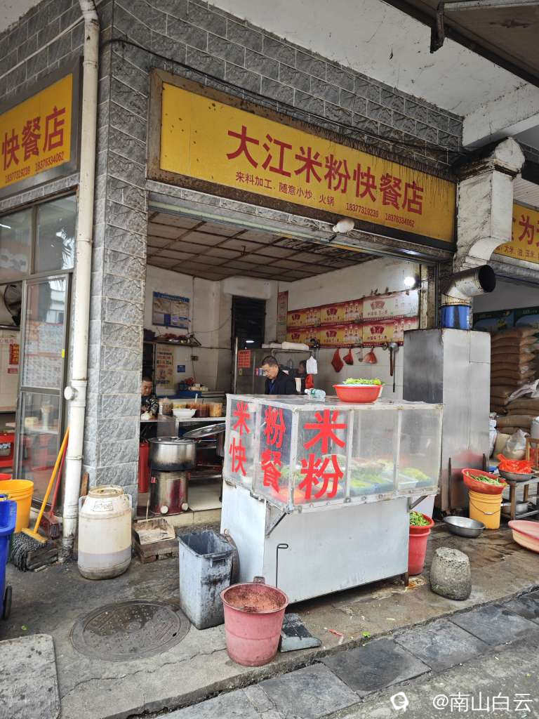 南边山街上饭店少,人不多。找了家米粉店。