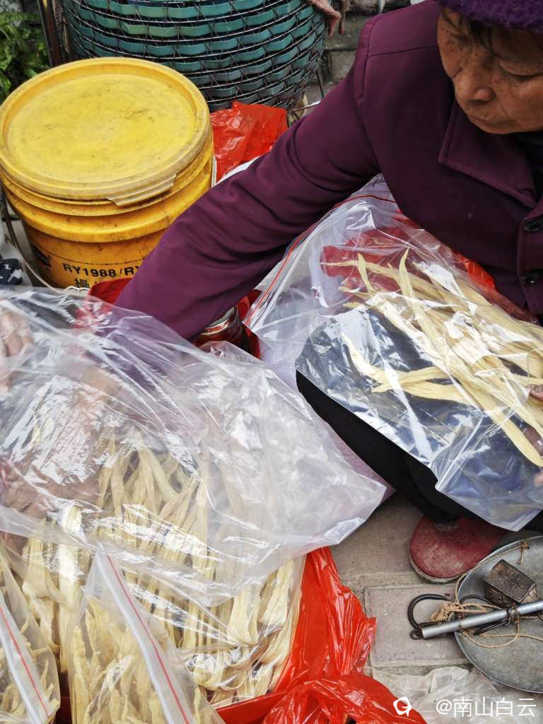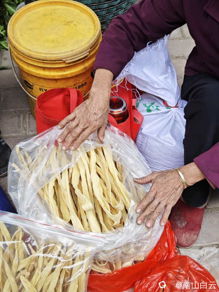 南边山腐竹,也是用地名命名品牌,价格不一样。我买的价格是32元一斤。买腐竹的大妈是附近东京岭村人,腐竹炒肉好吃,感觉不错。