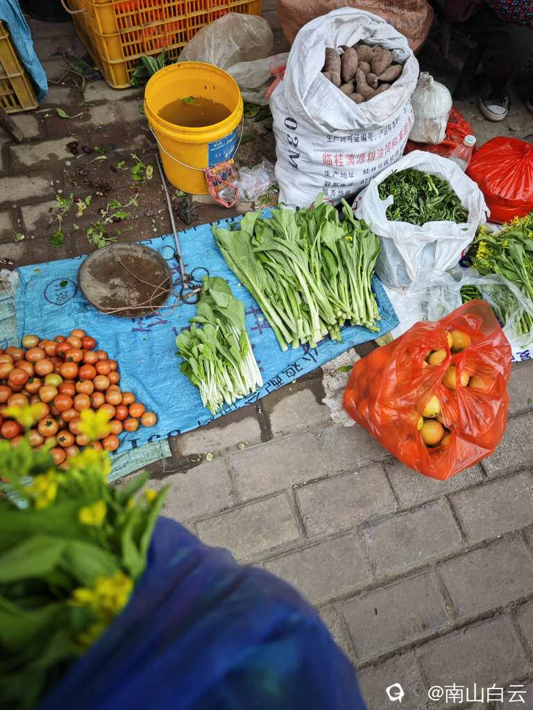 今天是南边山圩日,但人流量很少,除了卖菜的大爷大妈,买菜的不多,与圩日有点不符。