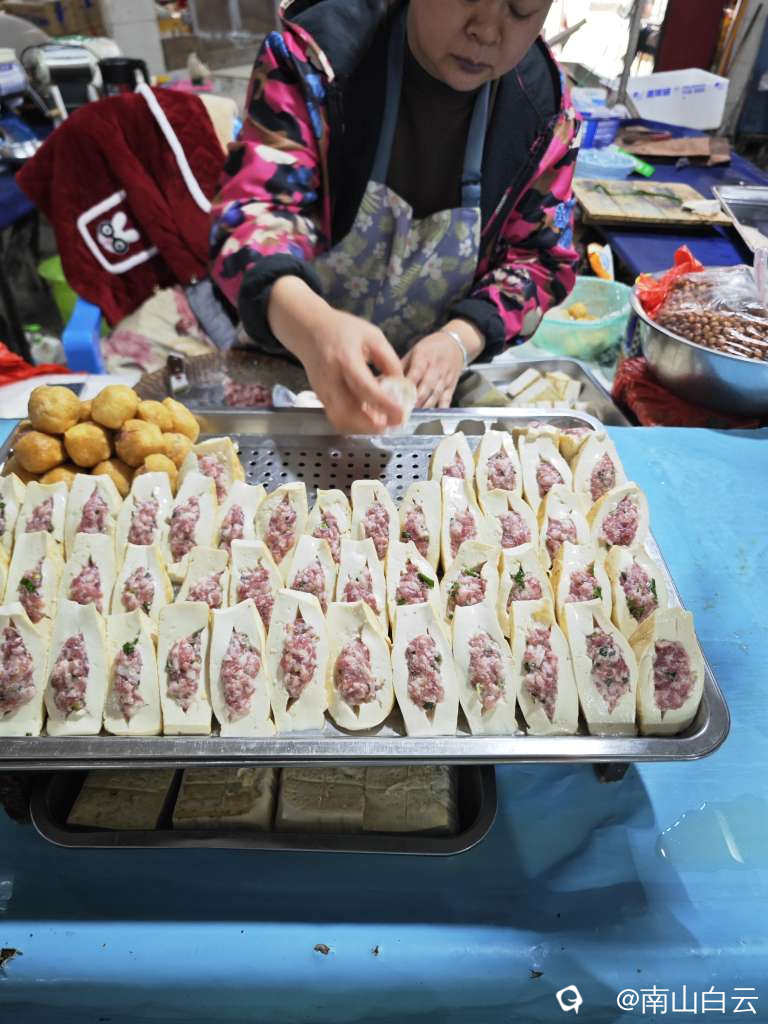豆腐酿,南边山特产,有家的味道。买了些,10元八个。