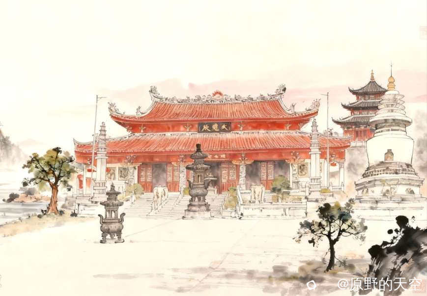 唐朝西庆林寺想象图。