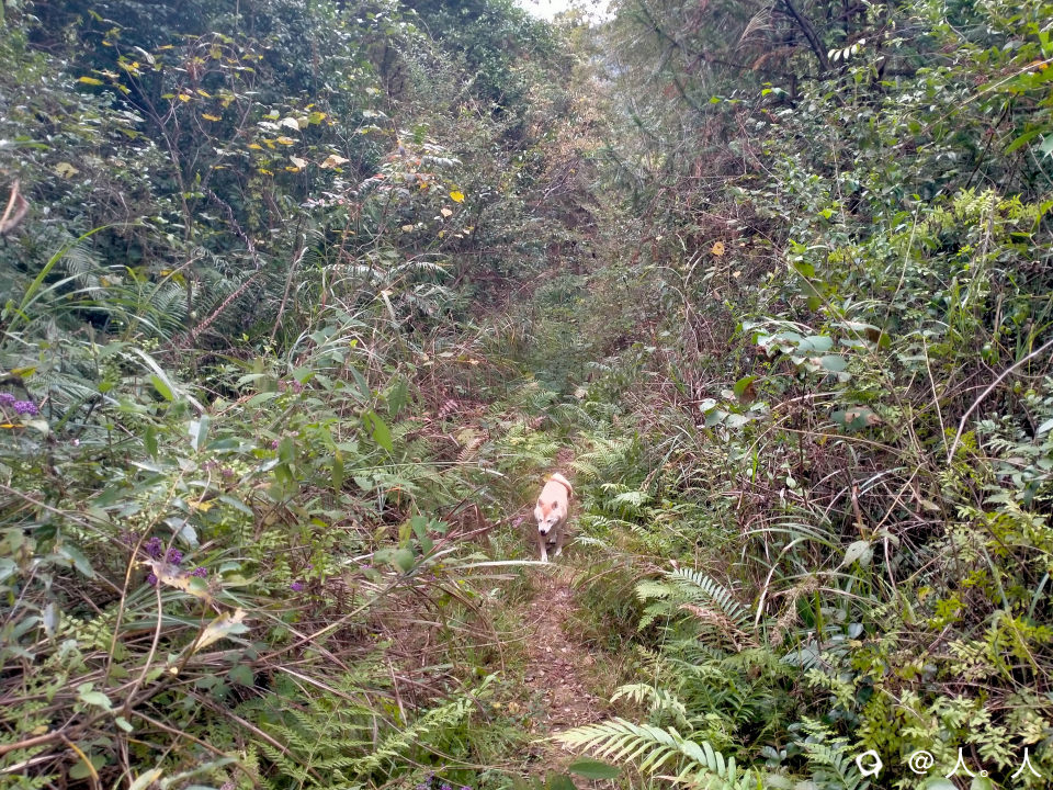 这个位置左边是山槽出来的小溪,古道刚挖断,茅草比人高。