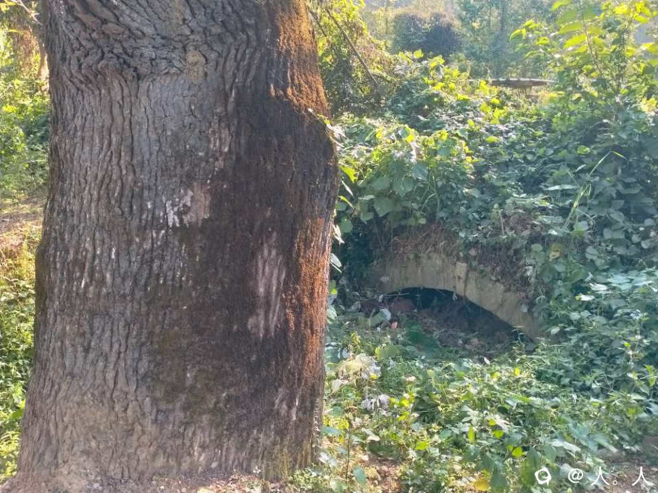 三百源村西,公路边一蔸好大的古树和一座原古道上的石拱桥(去年的照片)。现在周围的茅草更密了。