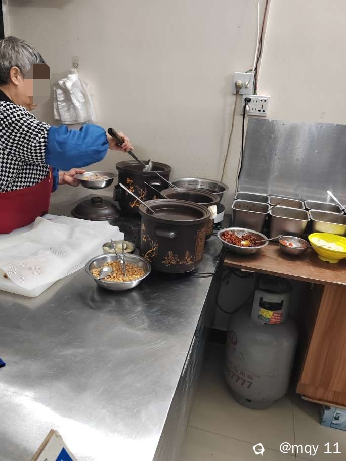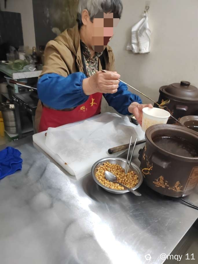 店面不大,材料都是婆媳两人轮流制作,早上媳妇四点起来,备料,熬汤,老人家六点半左右过来开门。