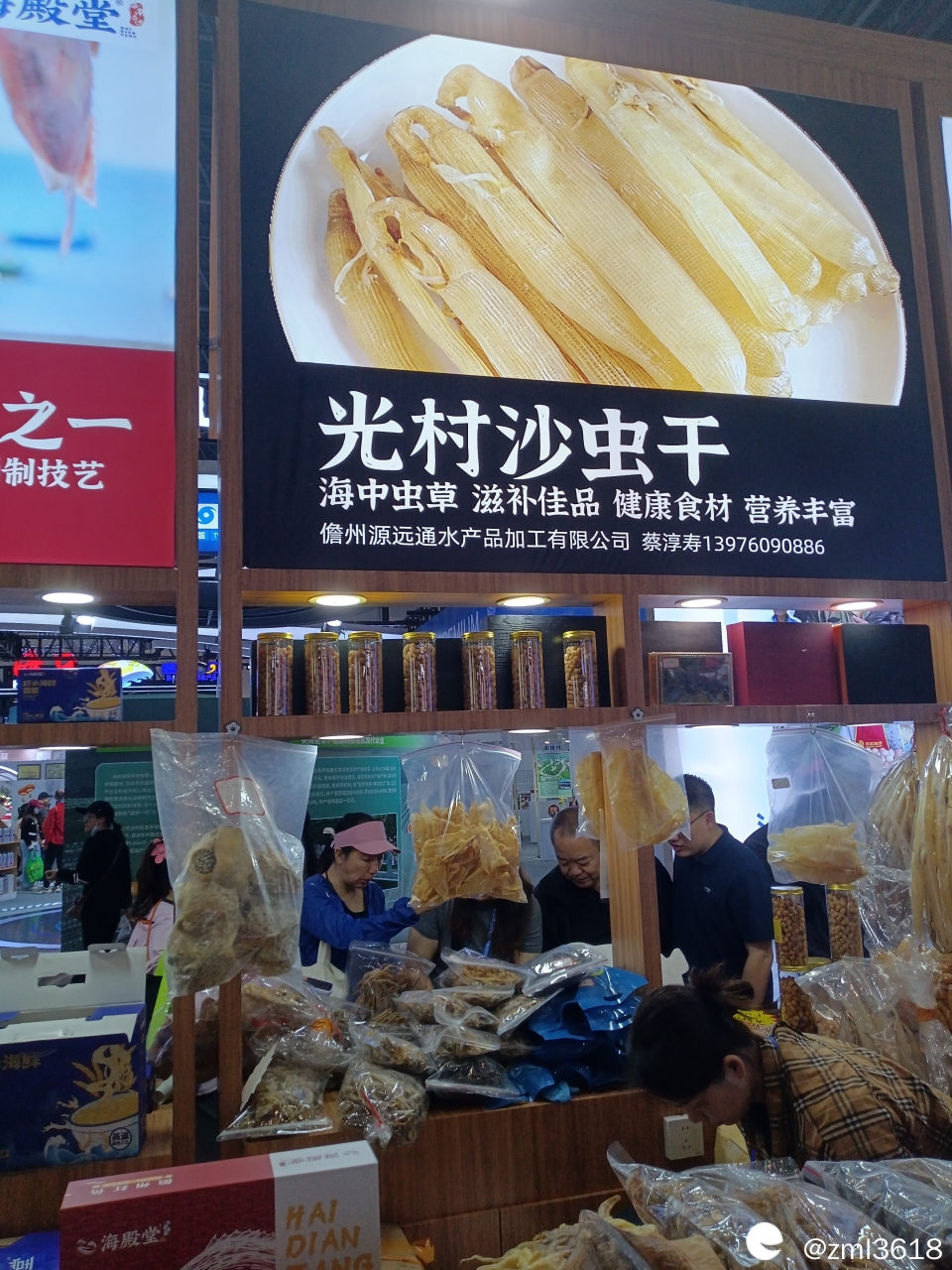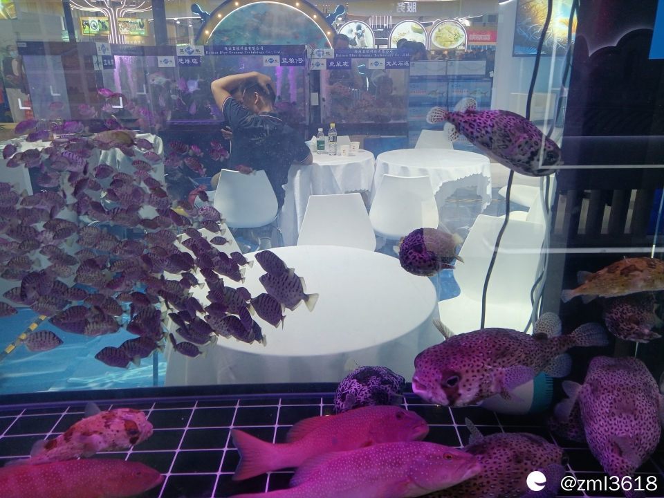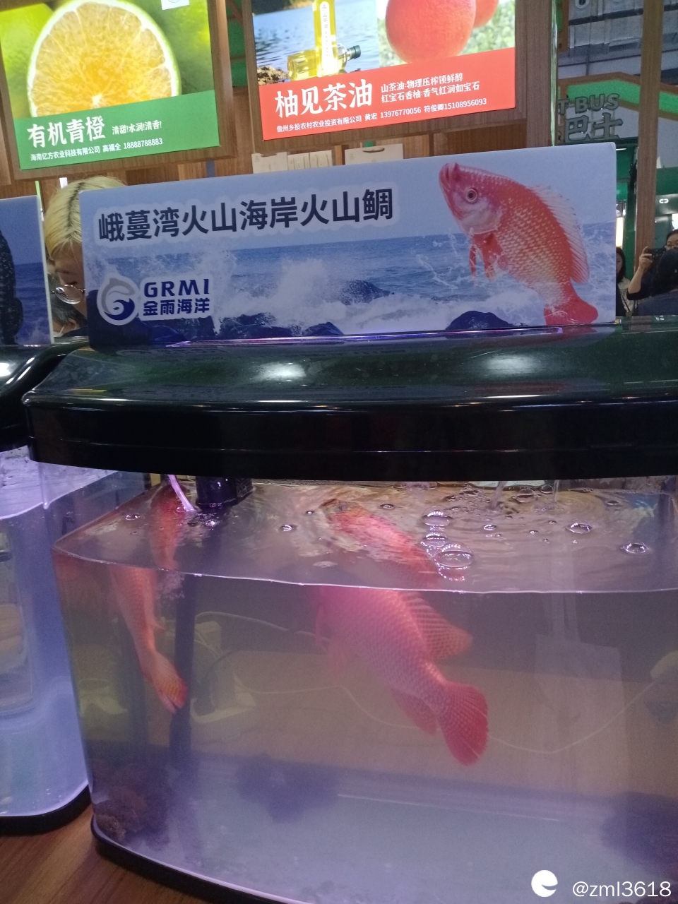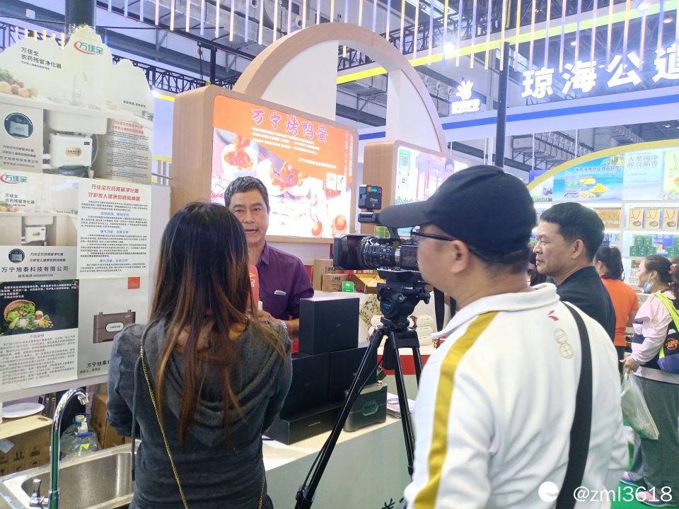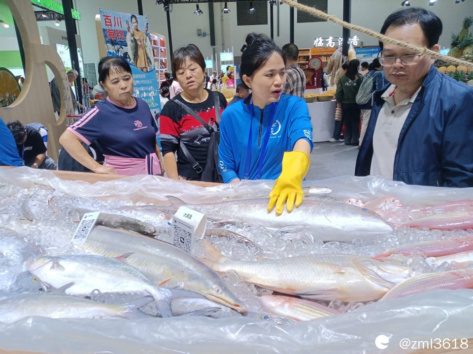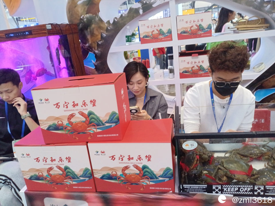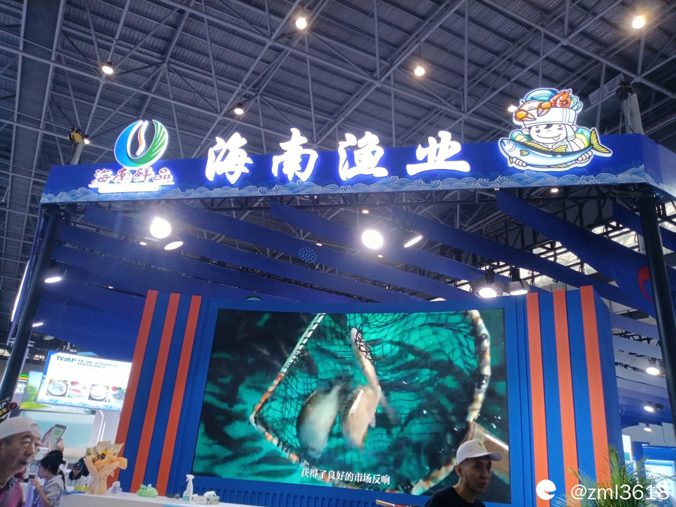 展台到处是现场直播,这是介绍万宁的海鱼。