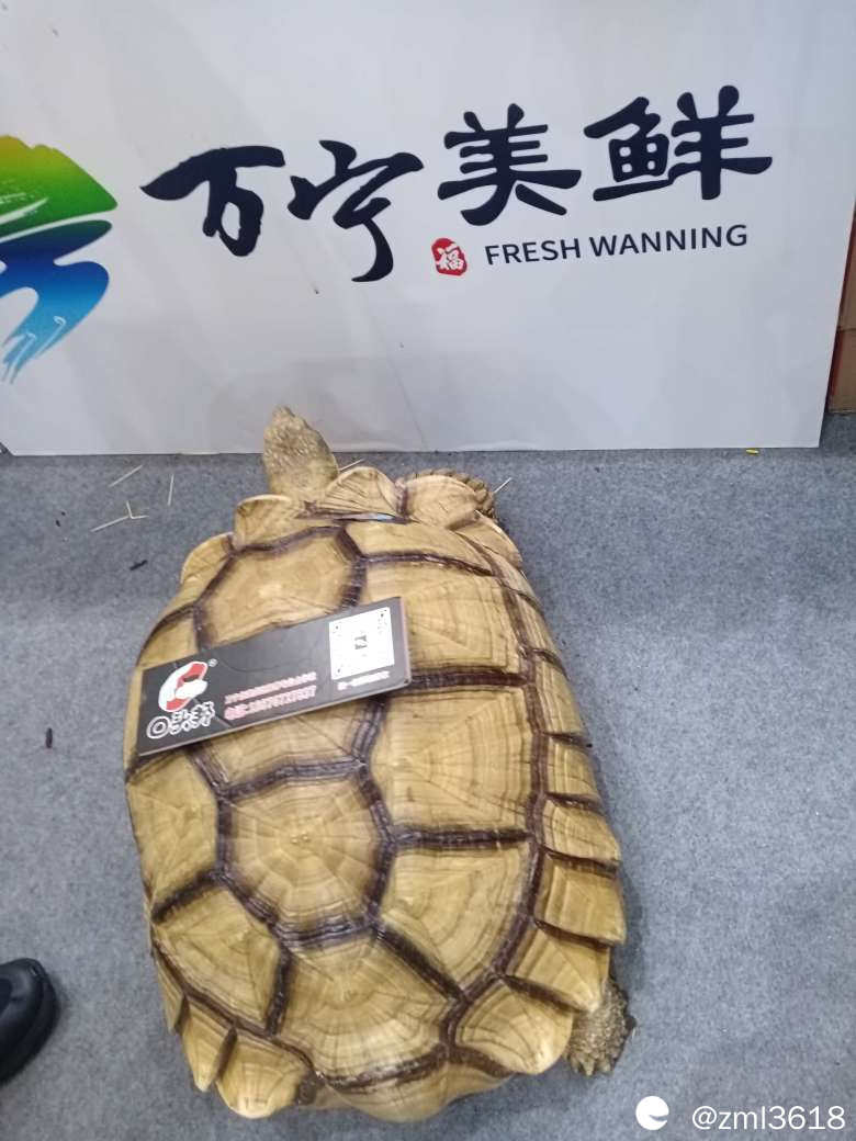 “口头邦”养殖公司的移动广告,此大龟,挺通人性的,慢悠悠地在展台周边转来转去,引来观众围观拍照。