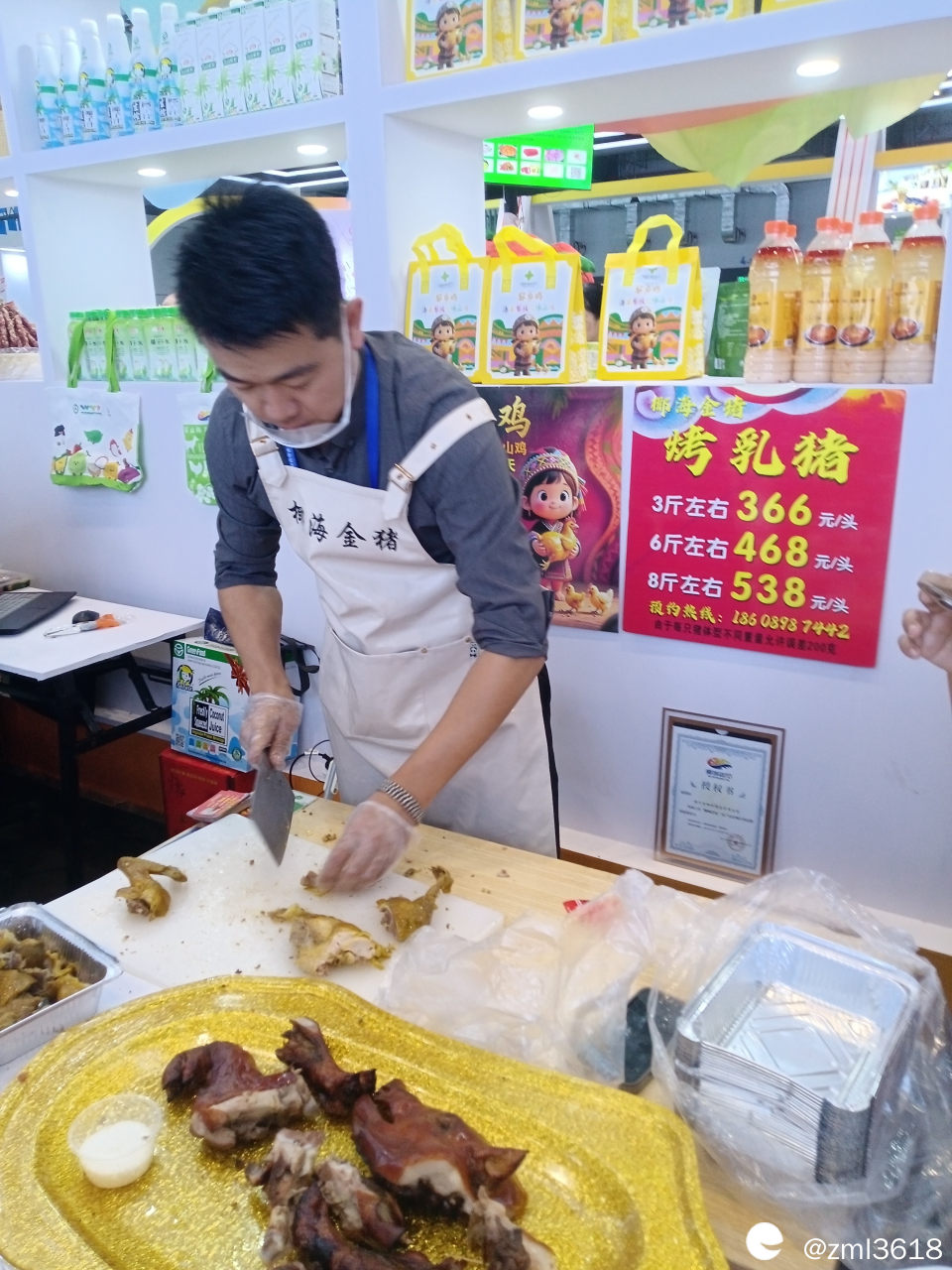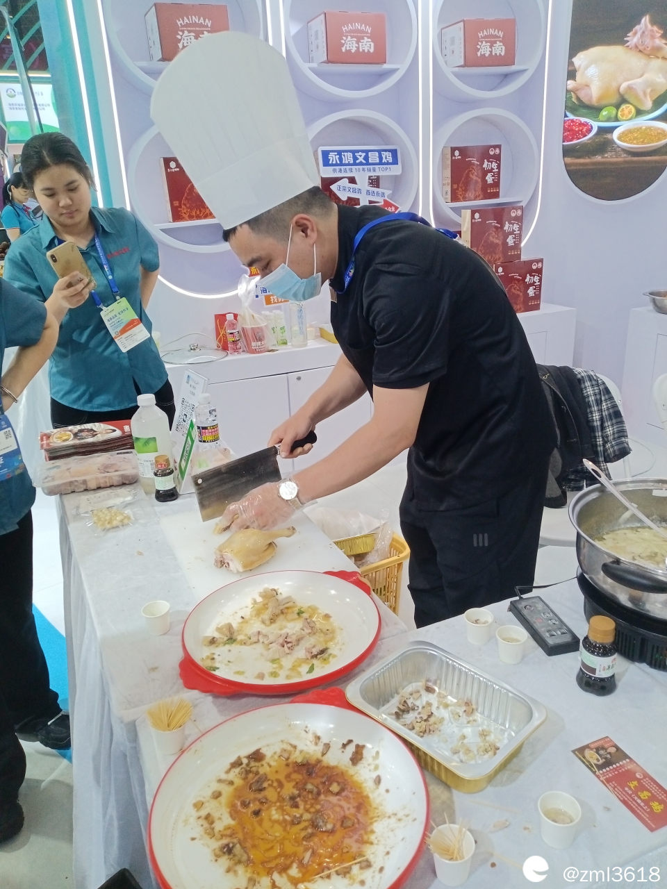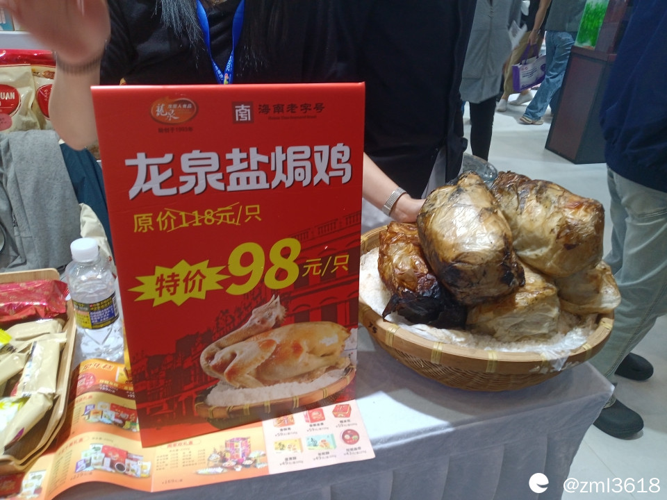还有四大名菜之一的嘉积鸭,曾在琼中吃过,皮薄肉嫩,挺好吃。这回在展会没找到,场地太大了,逛不过来。