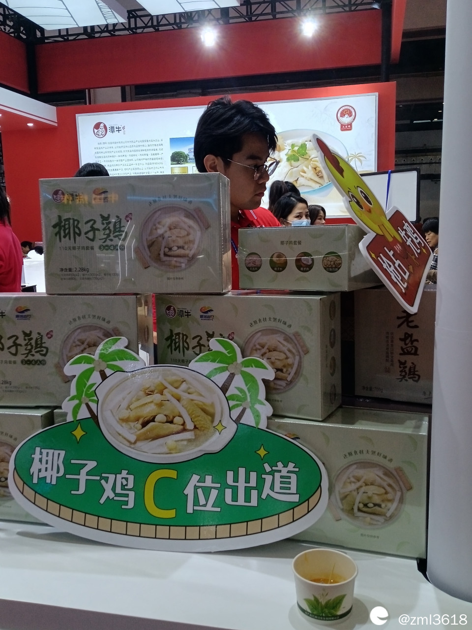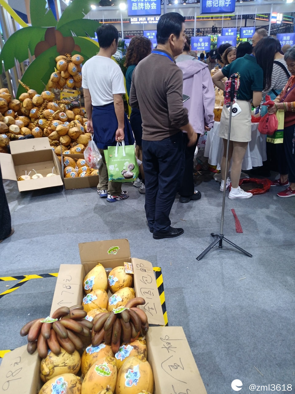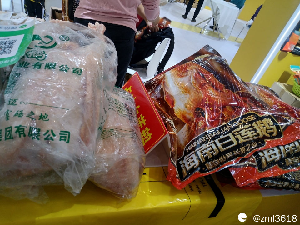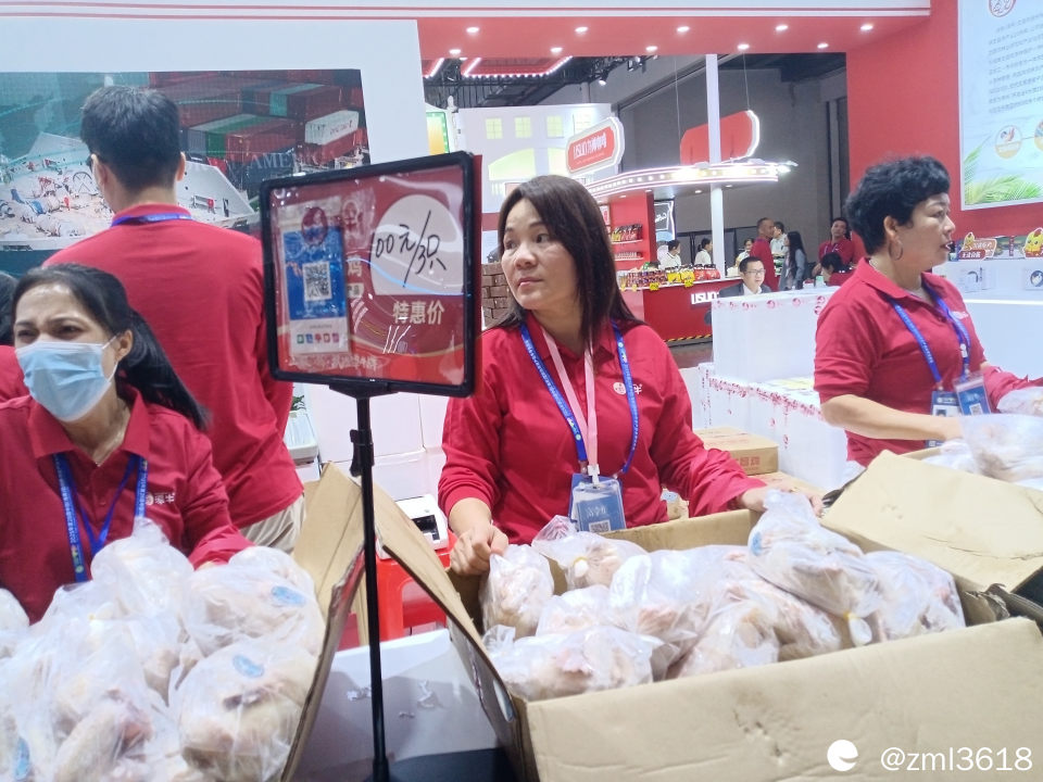 展会有几个安检入口,我顺利进场后,没有按场馆排列顺序走,而是随意闲逛。进了2号馆,就遇到去年见过的文昌小鸡。场馆里,人山人海 ,热闹非凡,好多来做直播的。