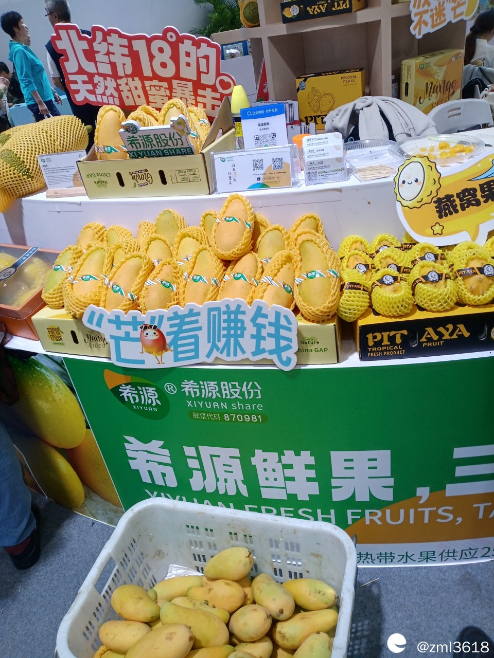 展台工作人员切了芒果让大家品尝,又香又甜,离开时,我果断买了一袋,花了20元。