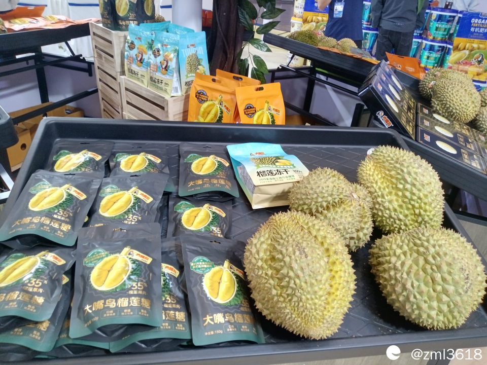 惊喜的发现,今年的展台看到了海南岛产的榴莲。