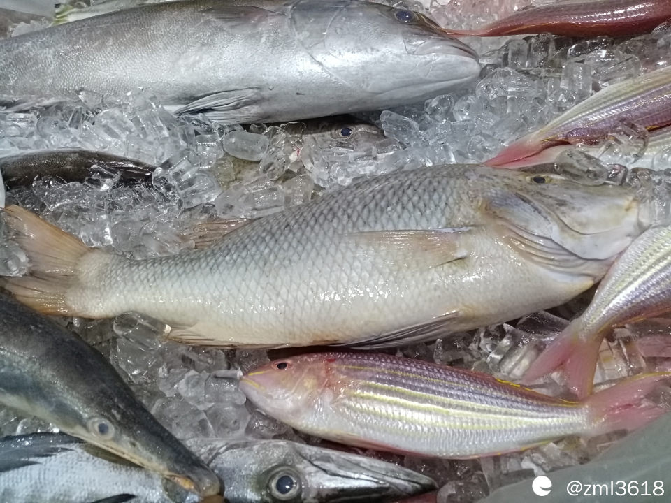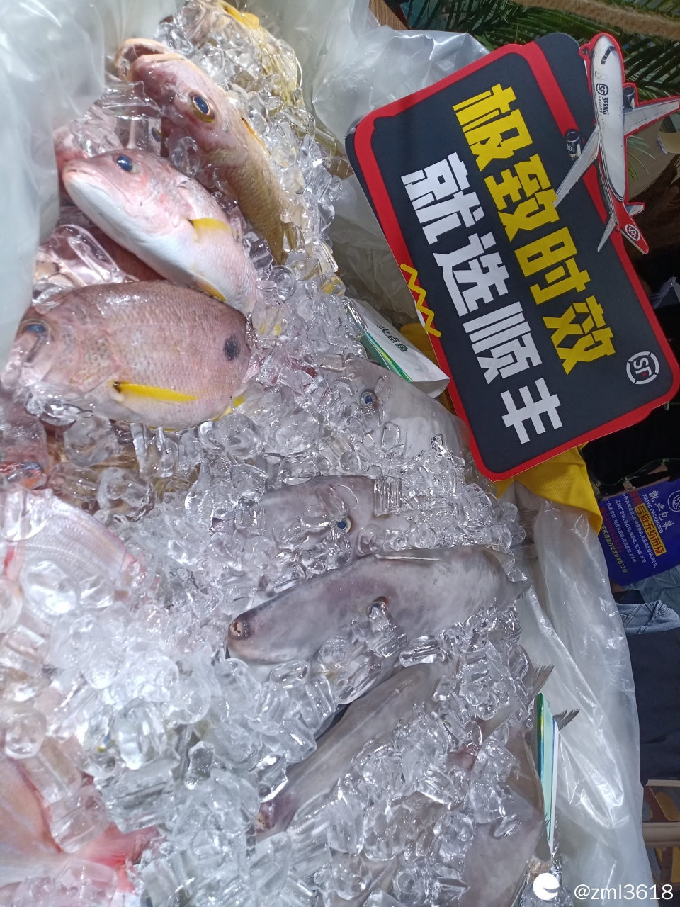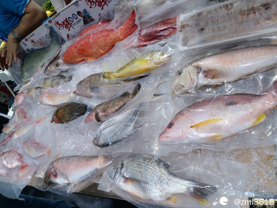 展台展示的各种海鱼,可顺丰快递。