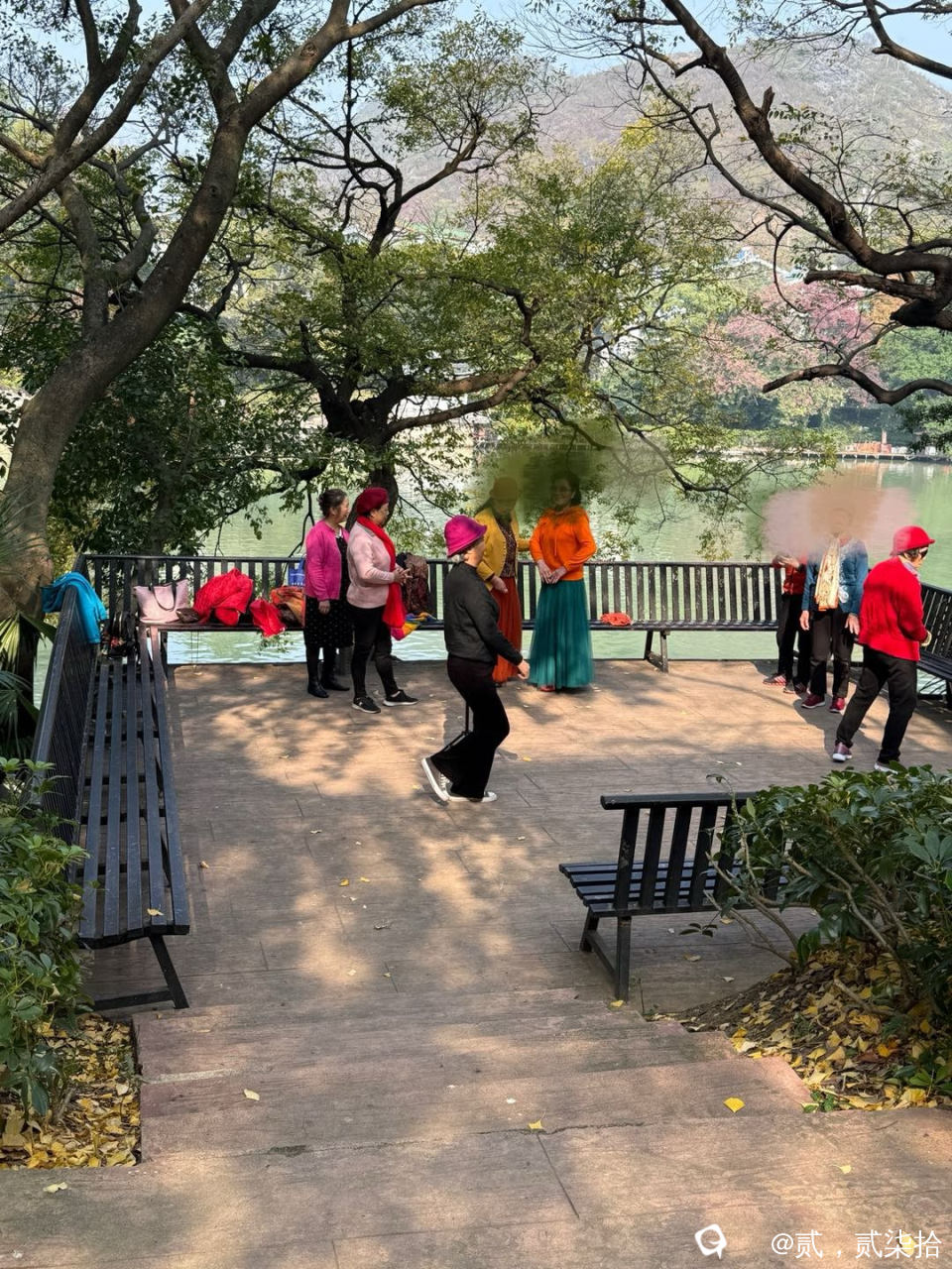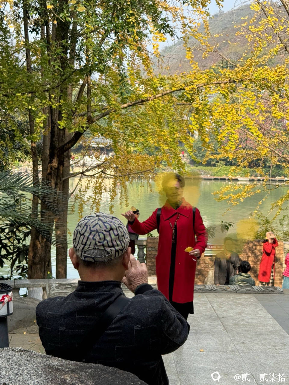 星期中间,湖边一路走来,也是这么多人!特别是银杏树下,大家都想要留住最美的时光