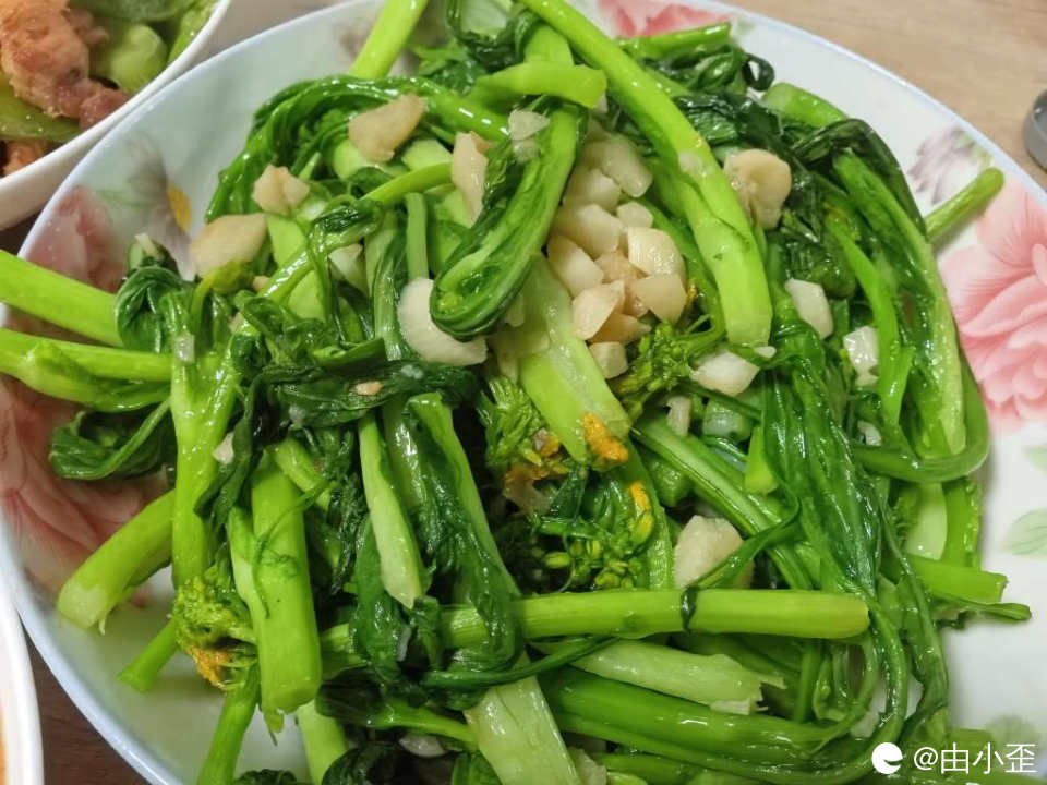 清炒时令蔬菜,很舍得放蒜末,不清不淡,不怕吃胖。