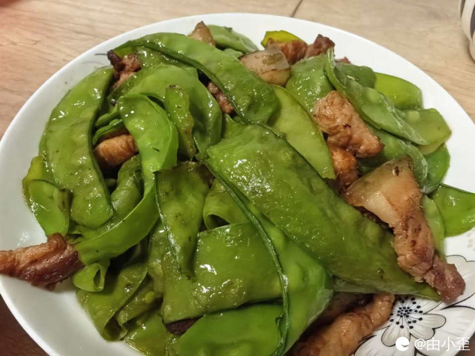 扁豆炒肉,翠绿的扁豆搭配着肉片,营养又美味。
