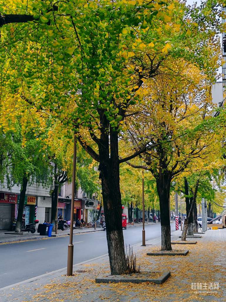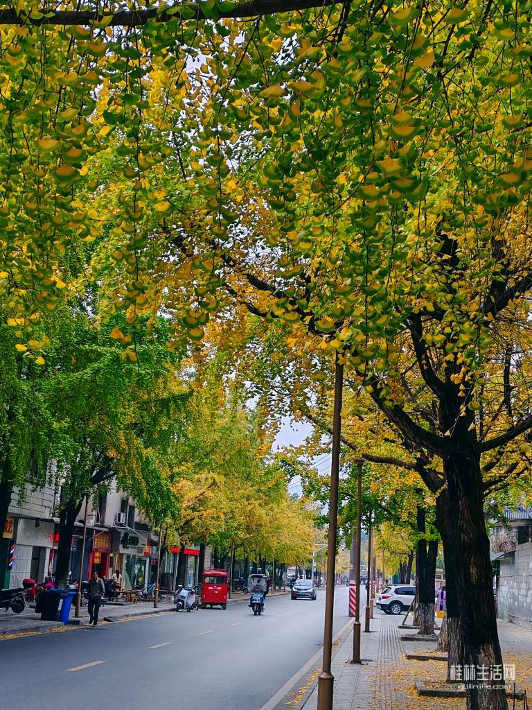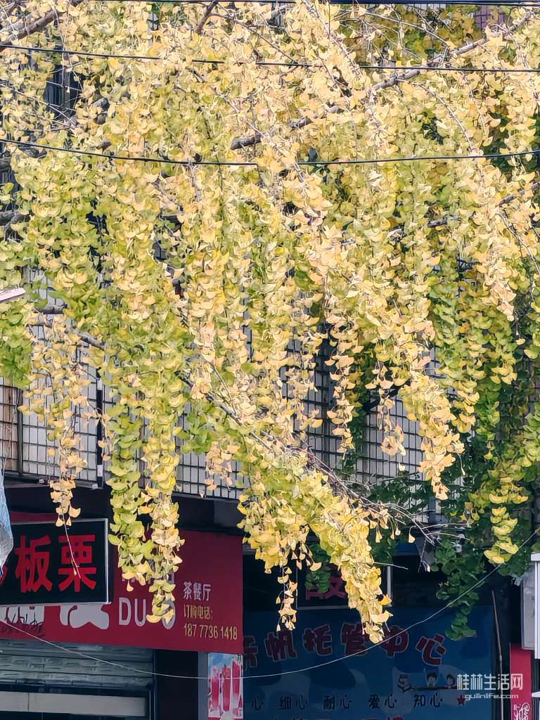 灵川县灵南路灵南一街,是灵川县城唯一一条以银杏树夹路的街道,每到秋末冬初,银杏叶次第转黄,都会吸引不少人驻足观赏拍照。