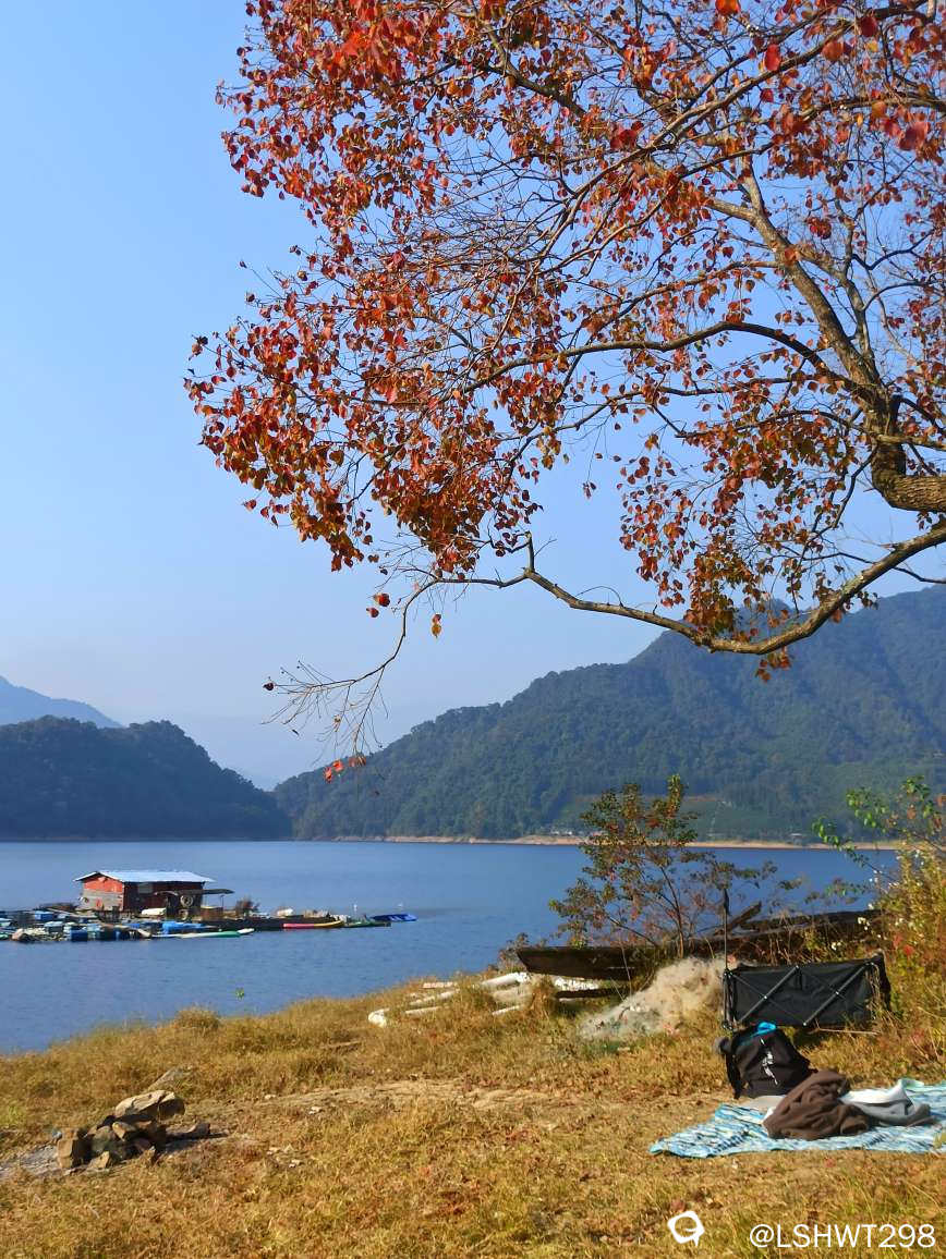 位于九屋内的青狮潭水库岸边,人少水清,红乌桕与泛泛的波光相互辉映,极有一番野趣意境。。。