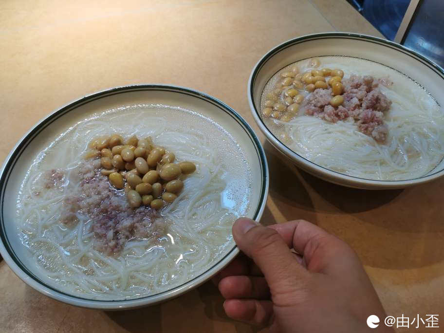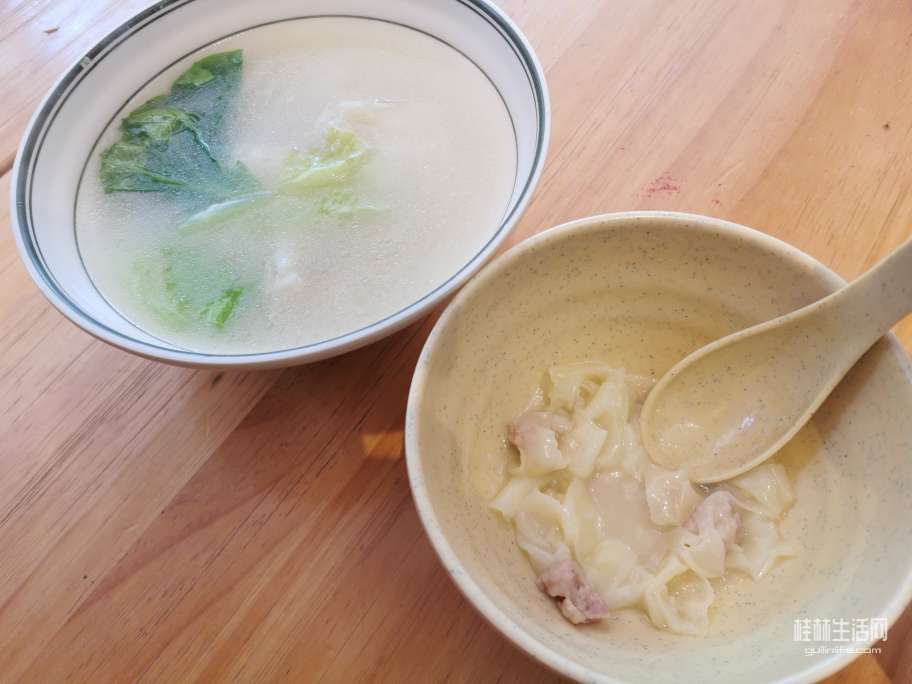 我们看着看着就饿了,用免单券抵扣了两碗全州红油米粉,自费了一碗馄饨,价格真美丽。