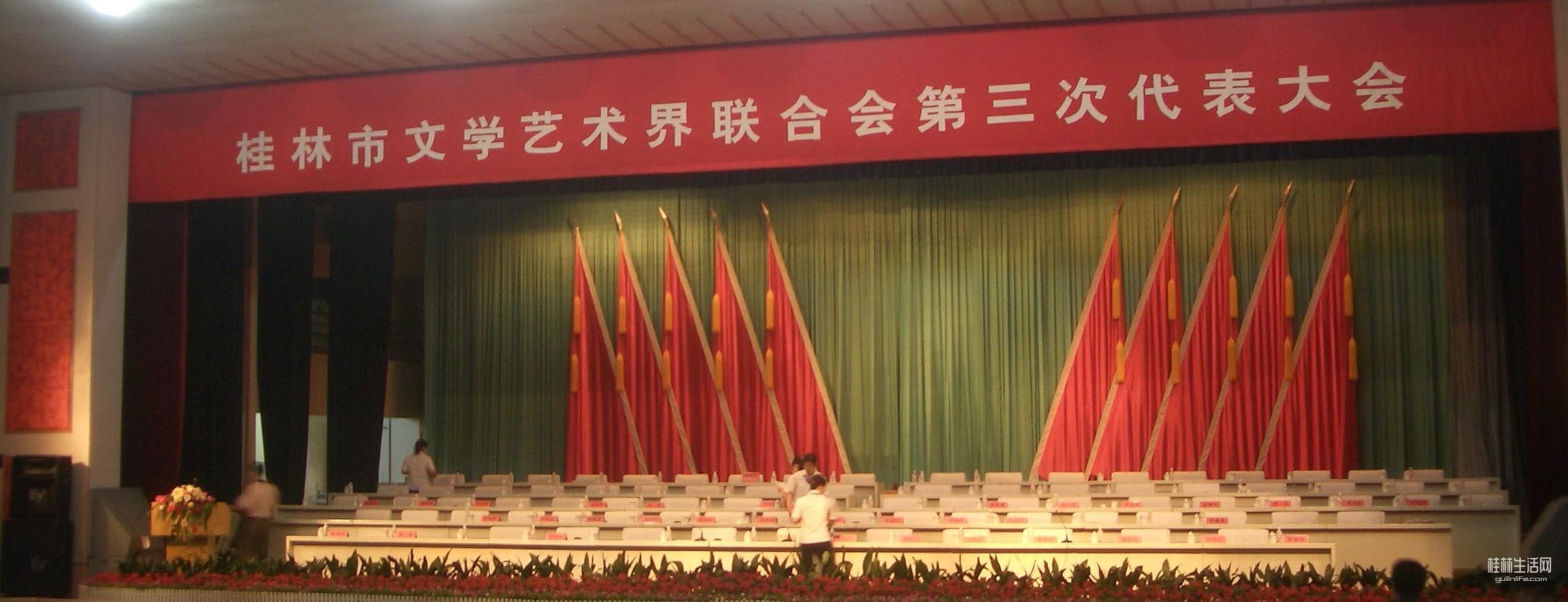 2010年桂林市第三次文代会在五美路市小礼堂召开。从来没坐过主席台,最后一排也荣幸。左前为刘绍荟老师。
