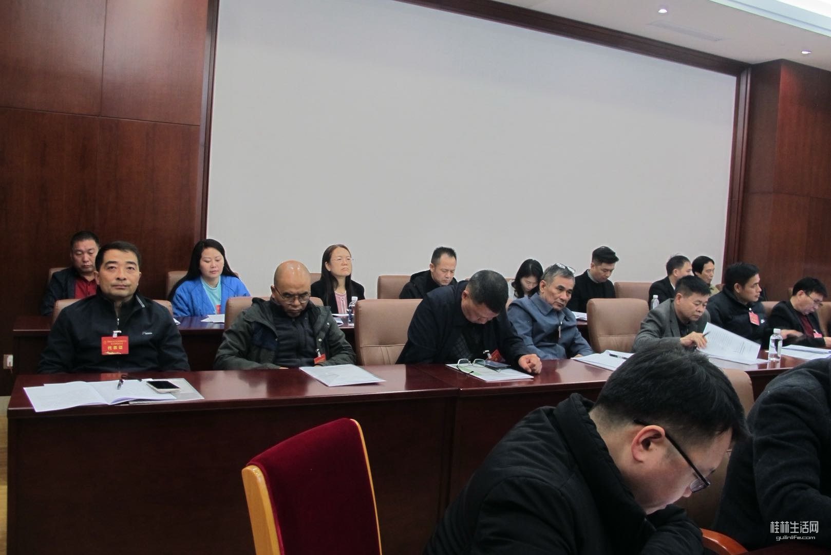 图中这张椅子是我坐先,发现右侧有一张有扶手的,就舍弃了它,移位。在座的是书协中选出来的代表。个个都是蛮很的角色,