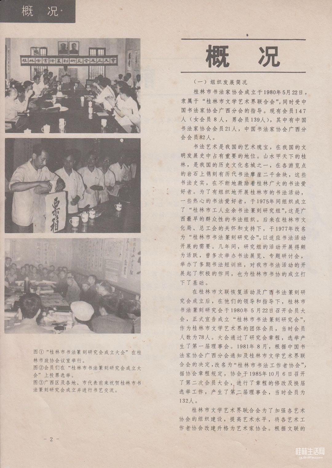 1975年桂林市书法篆刻研究小组成立,后改为桂林市书法工作者协会。1980年正式成立桂林市书法家协会。在张开政老一辈书法人的努力下经过50年,协会组织不断壮大活络繁荣。我由理事、副秘、秘书长、副主席,为书协发展作了很多事。因为住在市中心榕湖边的原因,离主席单位和住家近,(好多事我都是一个座机电话交办即做)那时是坐着单车出行奔波联络,油印通知、(书写、装封、寄发。会议地点联系、安排)小事大事干了不少。(还要感谢开政主席在他即将卸任换届时和我认真的讲过,要我挑起这副担子,承担主席一职。我好懂事,当即婉言推辞,坚决不干。理由是我没有级别,学历不够。就更莫讲多年后我去文联找领导,申请一顶书协荣誉主席的帽子来罩上。记得文联刘纪春主席在位时,专约我到湖滨文联楼上办公室谈话,讲广西书协换届,我们推荐了你作为桂林市推荐的副主席唯一人选,按资格、讲水平非你莫属。我认可,没有推辞。十分感谢他对我的器重。结果开会选举的日子,我因工作休息日两天一定要上课。离不开而没去南宁。打脱了副主席一职,我不在意、更没有遗憾。也要感谢更早一点的樊平主席,在十字街桂花大酒楼饭局上追问过我,调你来文联,迟迟没见你的动静呢。shiwei的两个考核干部在榕城路文联三楼,也曾问过我,为什么不来。我坦诚回答,我去浙美进修是luo副市长批条请财政拨款给我交的学费,批字有“学成归来回原单位工作”字句,我信守承诺。直到今天,深藏了多年的秘密才从心底流出,让同道广为周知。)