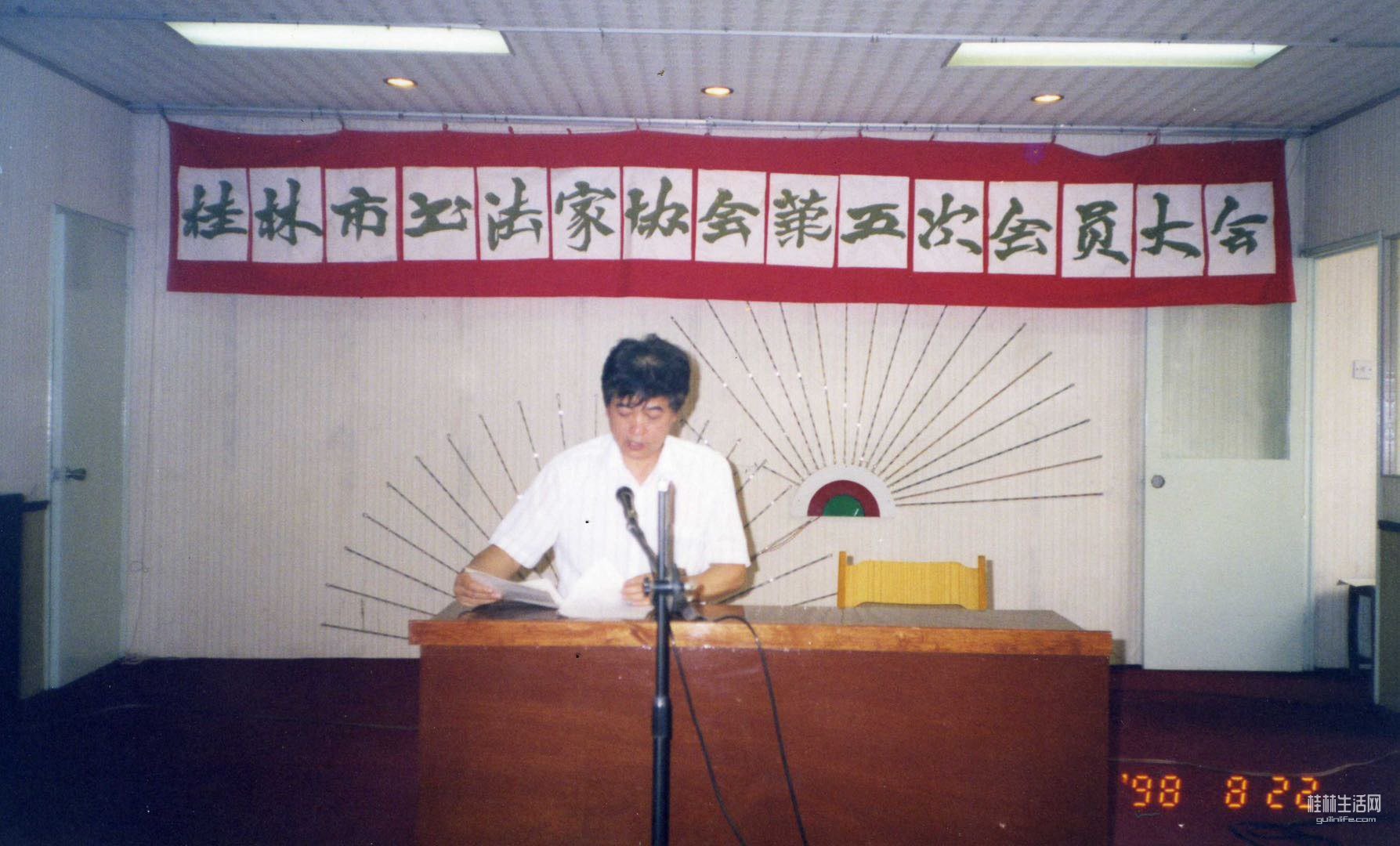 1998年8月22日在M主路自来水公司一带(什么单位忘记了)召开书协第五次代表大会。时隔三个月,同年11月28日地市合并再开。是在解放西路桂中阶梯教室。