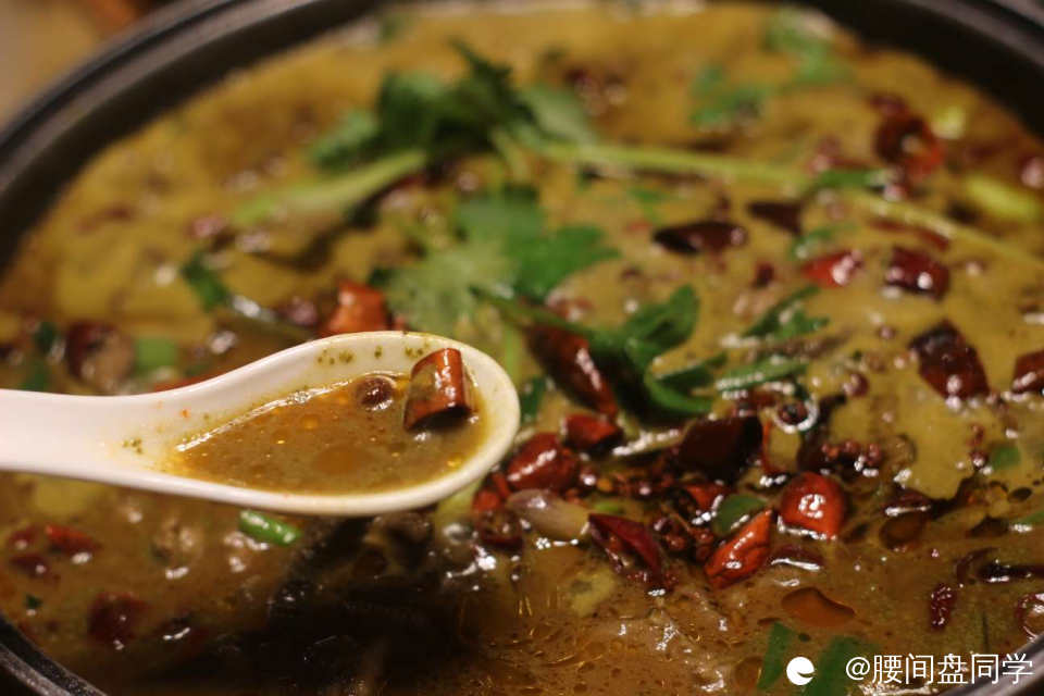 重头戏登场,我就是为了这一锅侗家牛瘪汤而来的!莹莹跟我描述过这味道,她说感觉是在嚼黄牛的消化物,吓屎我了,还好不是排泄物~