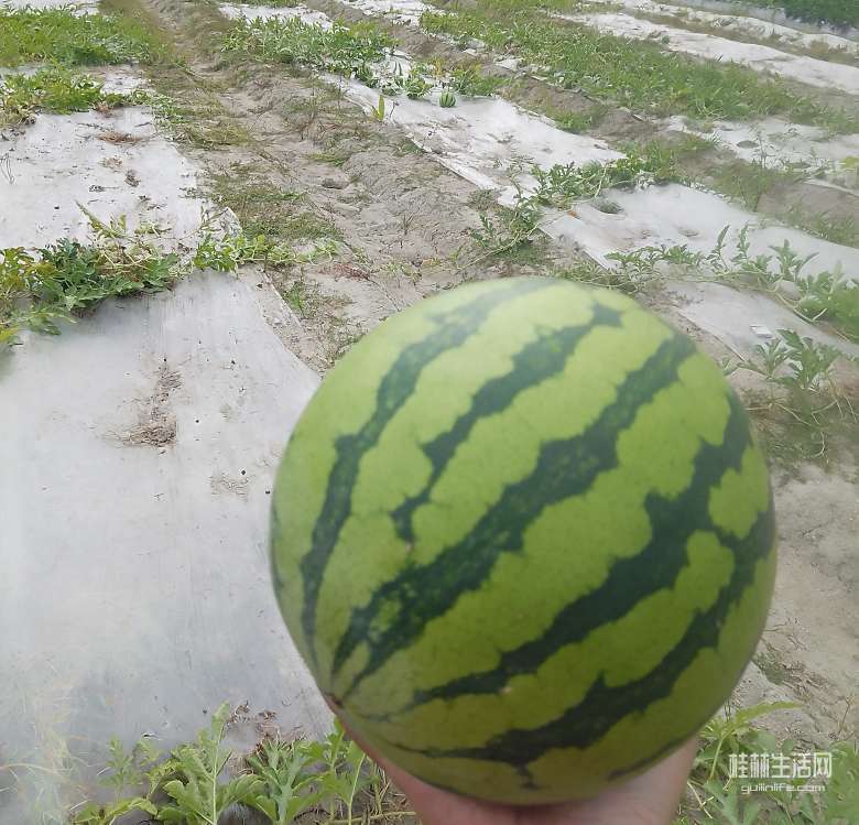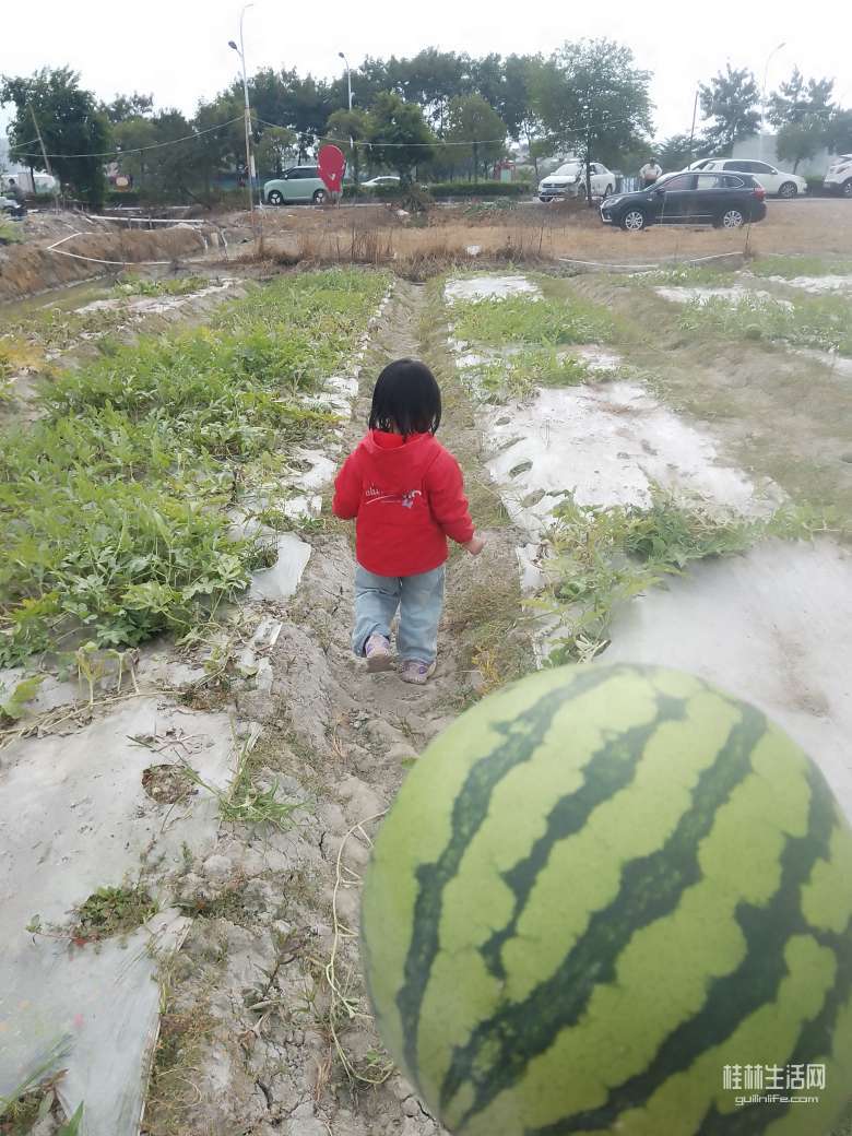 看到西瓜快要挖藤了过来买个西瓜回去吃,小朋友在地里拍了几个西瓜后和我说这个西瓜熟了,我看这个西瓜很漂亮就买下来了…………
