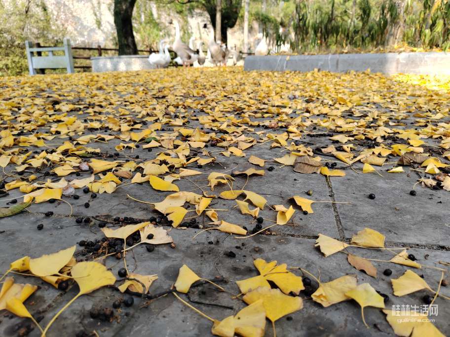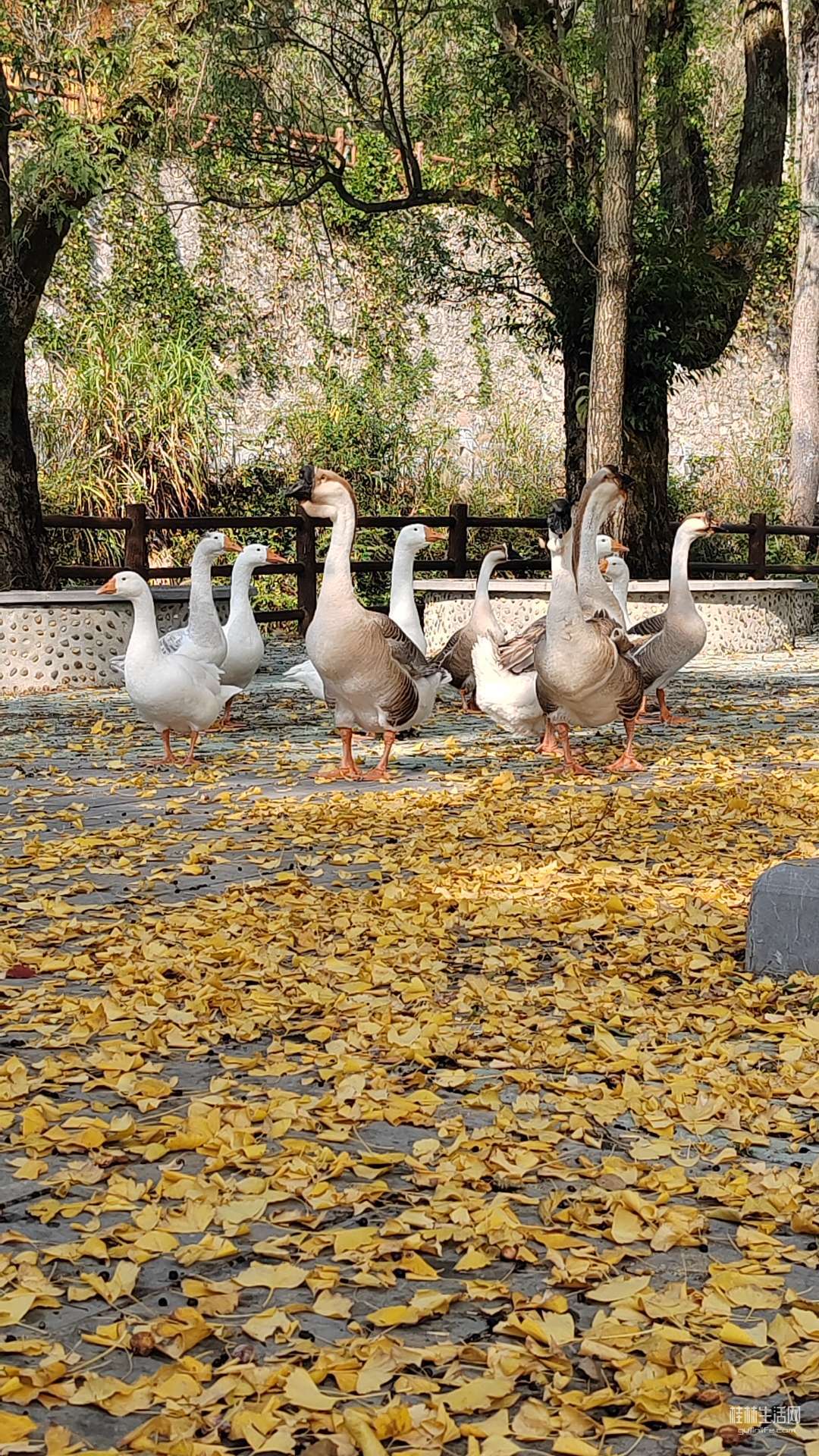 如果说桂林的冬天是一个童话世界,而金盆村自然少不了童话世界的主角,银杏叶黄,清风徐来,水波不兴,举酒属客,诵冬日之诗,歌窈窕之章,鹅鸭成群,一地金黄。