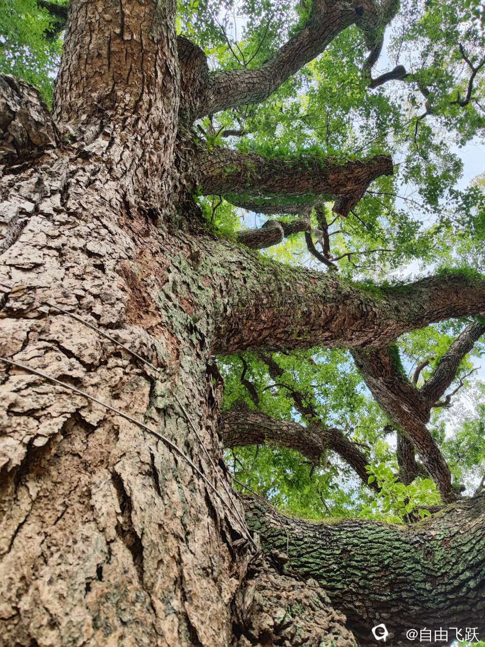 今天见到的这棵四百二十岁老树长得郁郁葱葱生机勃勃,不像昨天在某城中村见的那棵老树历经磨难破破烂烂,可见四方山川土地有的灵气旺,有的灵气淡,各有千秋,这棵四百二十岁老树的灵气滋养了周边园林,连老景区废弃老古堡也得天独厚地亮丽起来,乍一看还以为是塞外烽火台一角。