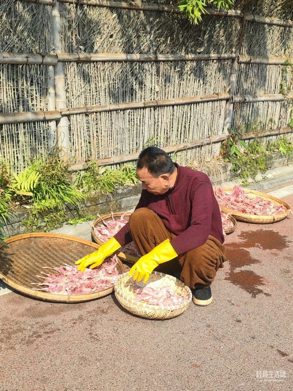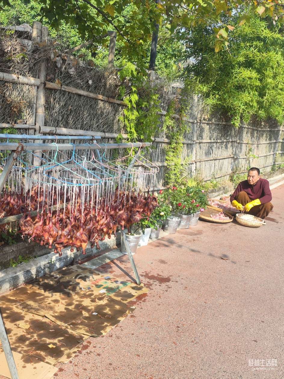 阳光灿烂的冬日,外出休闲骑,在路上见到好多人晒腊肉,一派让人口角流涎的景象,正是: