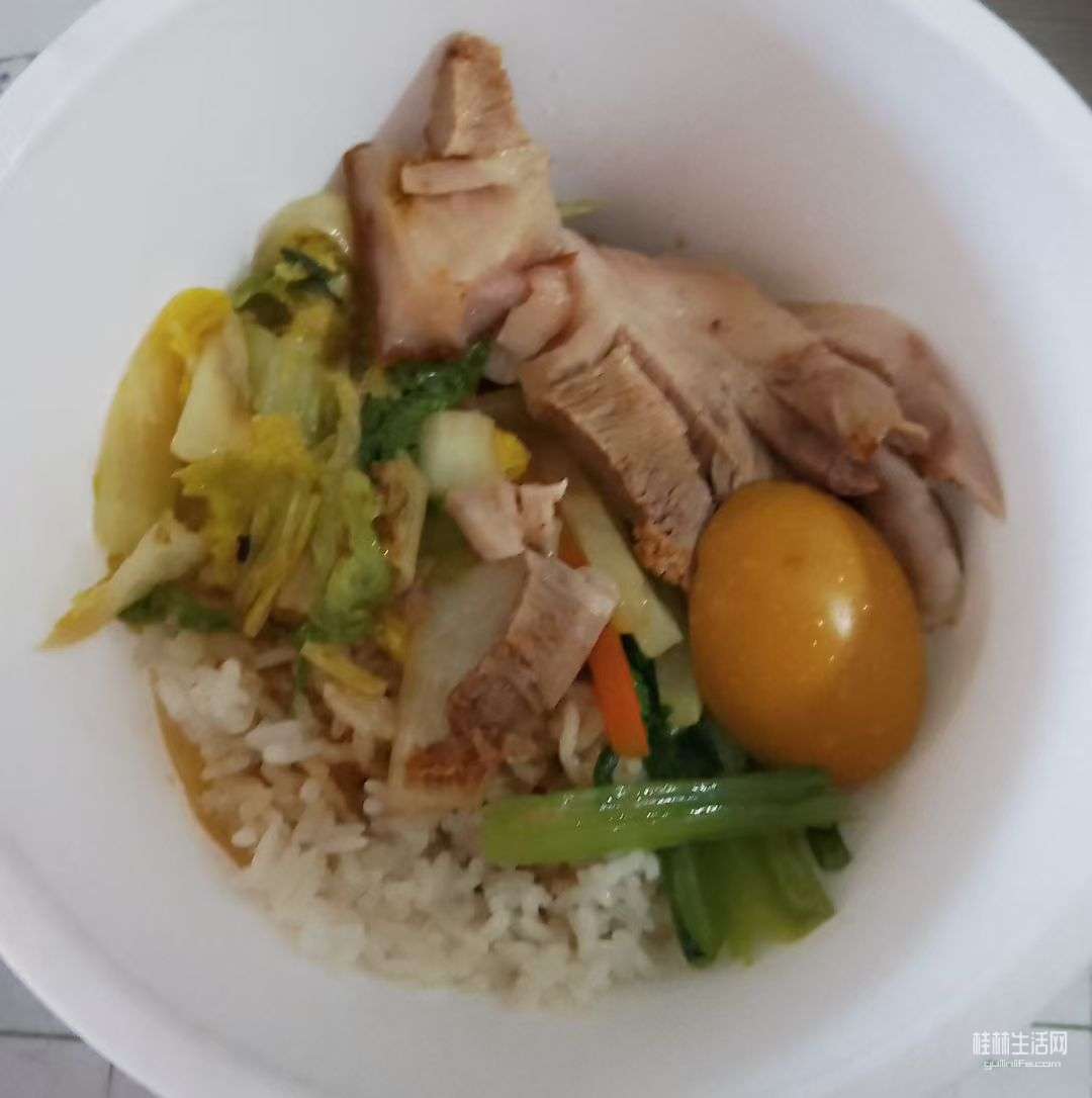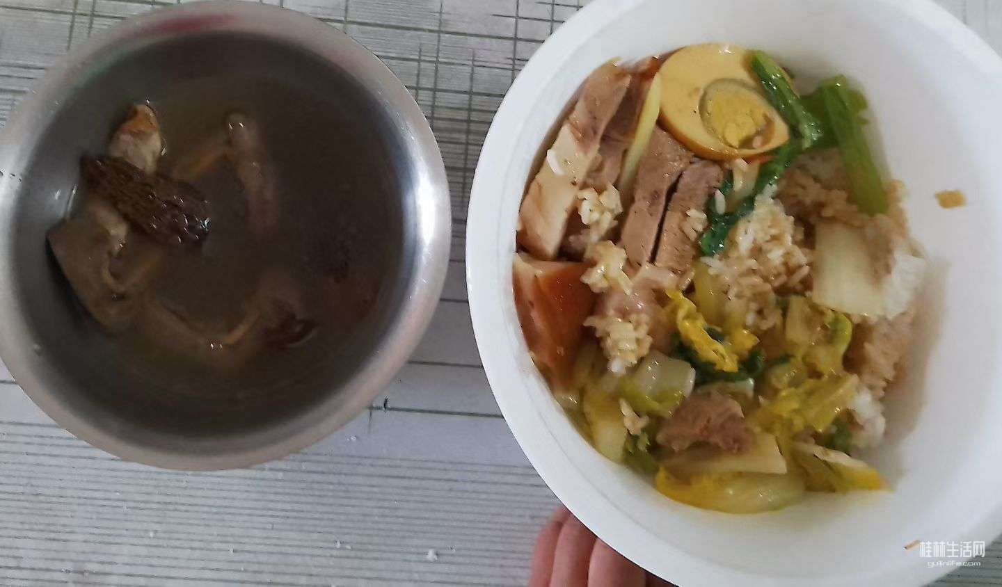 中午在家吃点剩下来的汤配个猪脚饭吃……
