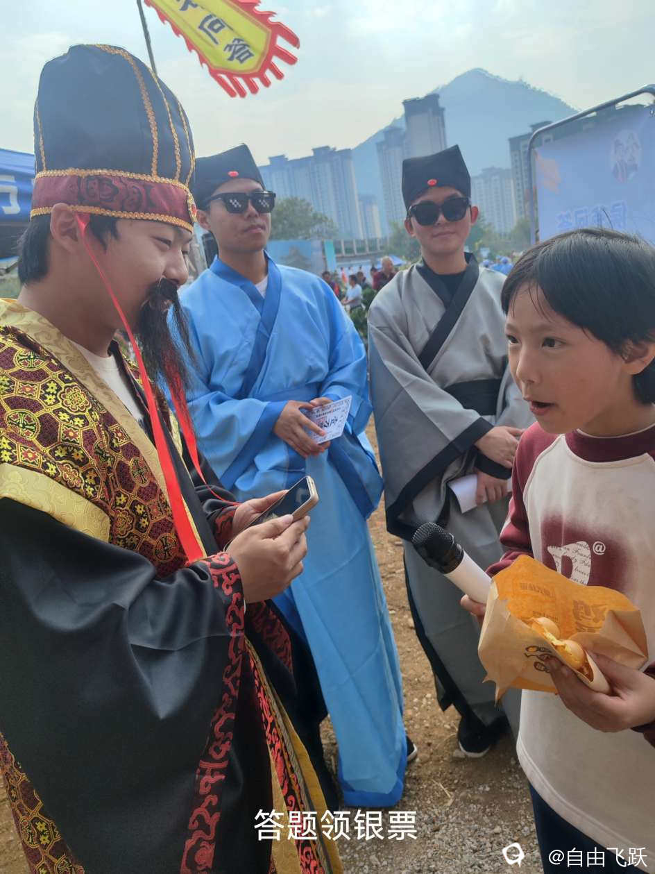 接下来就是看歌舞表演,参观盆景展,参观村居,吃美食,答题得银票,银票领东西,节目多多,好不好玩,有图为证: