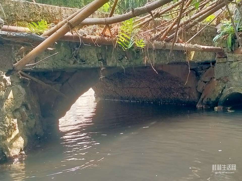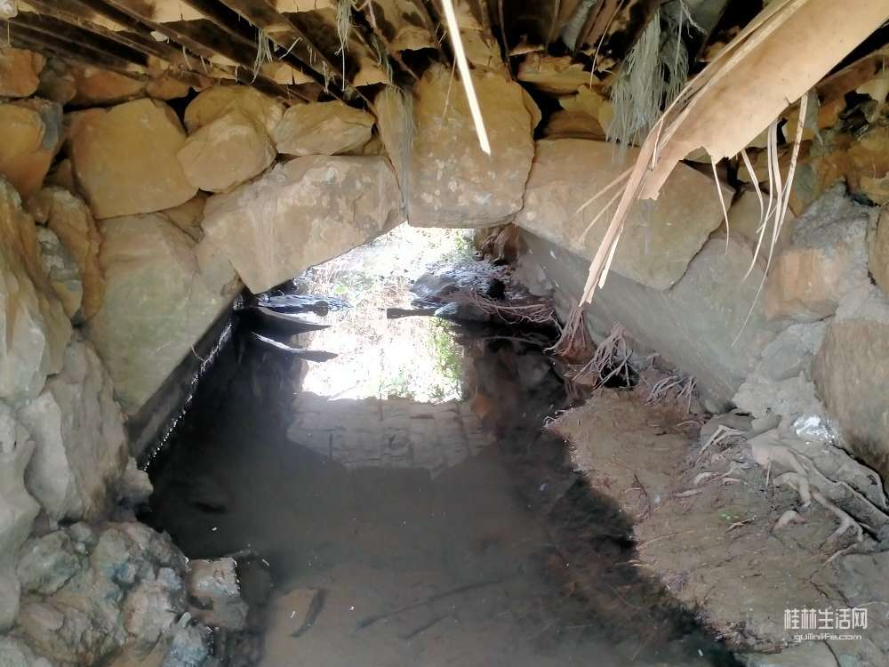 兴坪鲁山寨进村公路下面的石拱桥,两边加了水泥,但是看得到里面很工整的石拱。