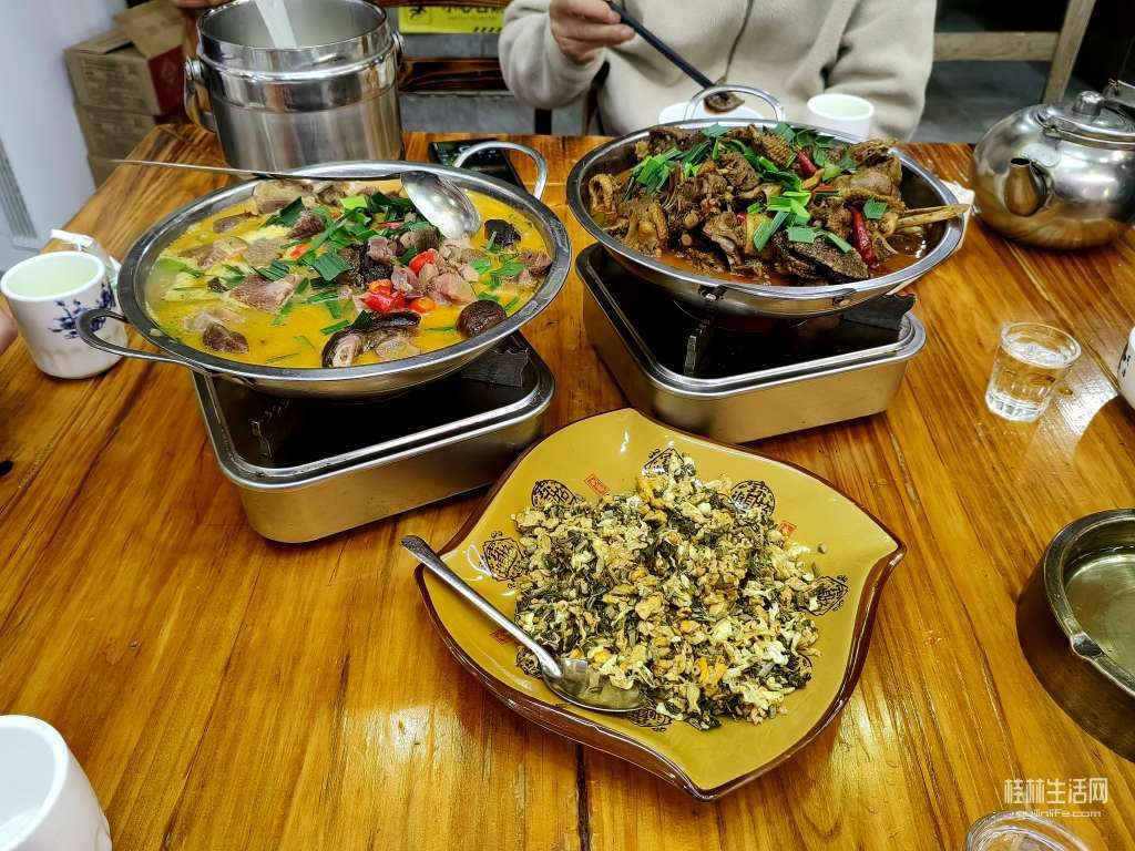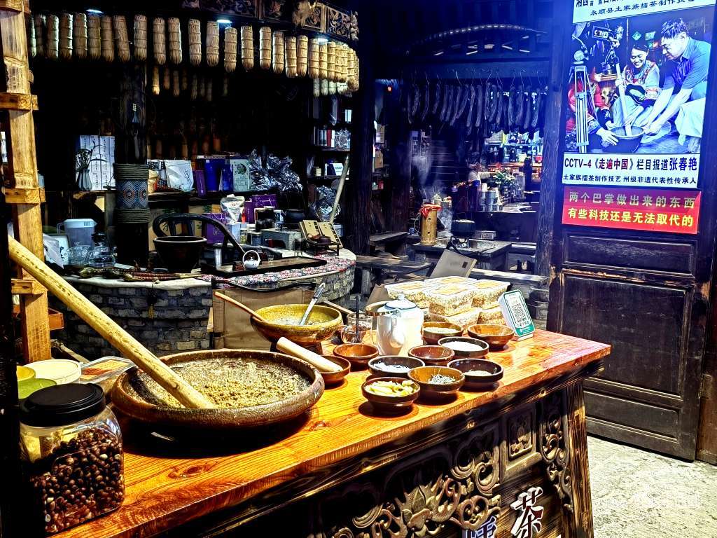 傍晚我们在景区里的食街找了一家土家族土菜館,小店客多干净,莱价不贵,我们点了一锅土血鸭,一客老腊肉,一客香葱炒寡鸭蛋,要了当地二斤水牯冲水酒,喝得十分尽兴