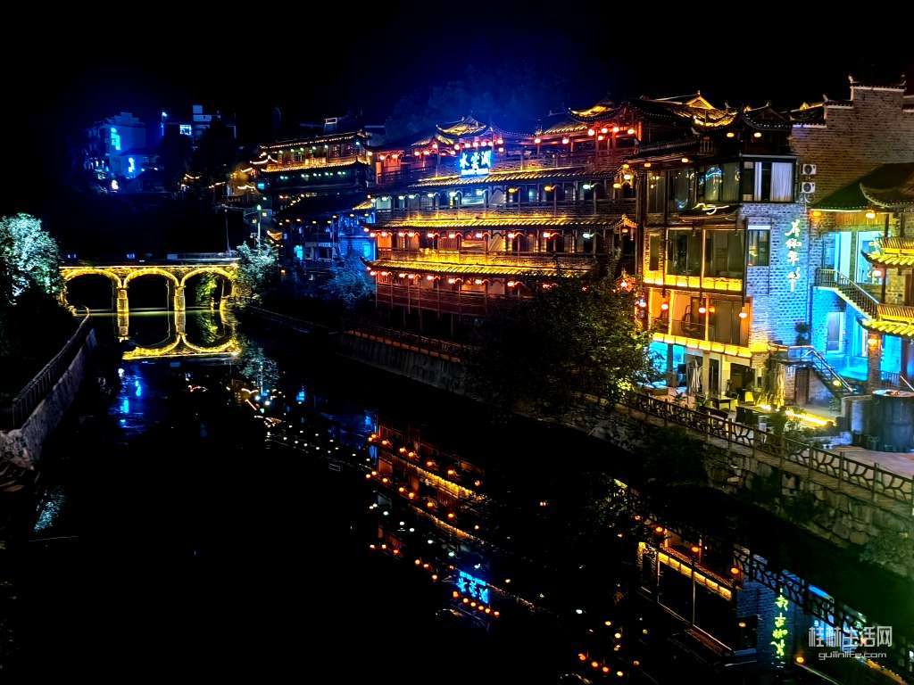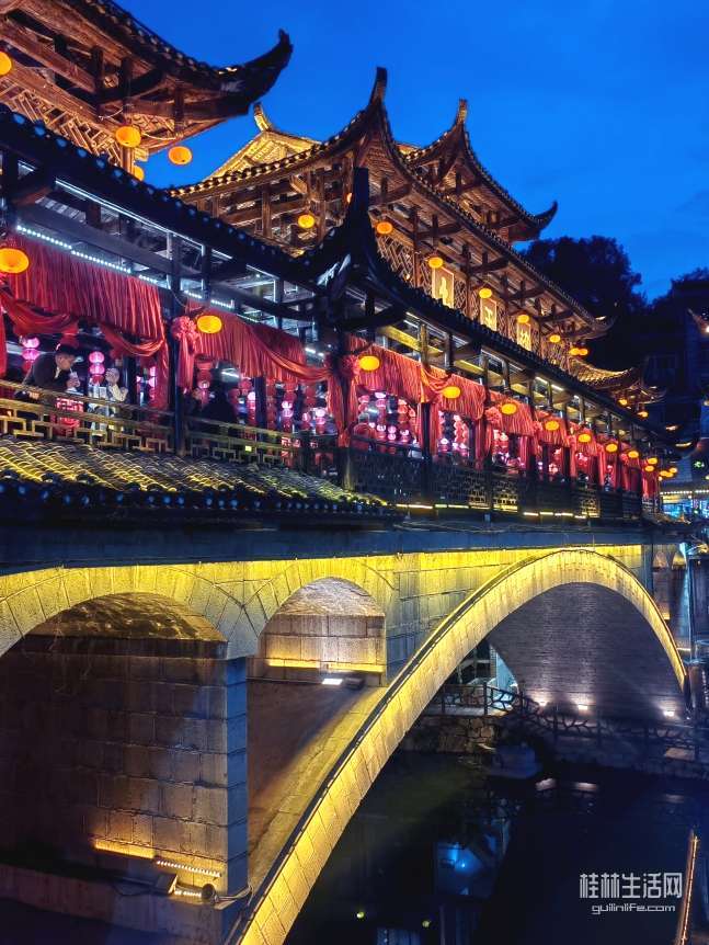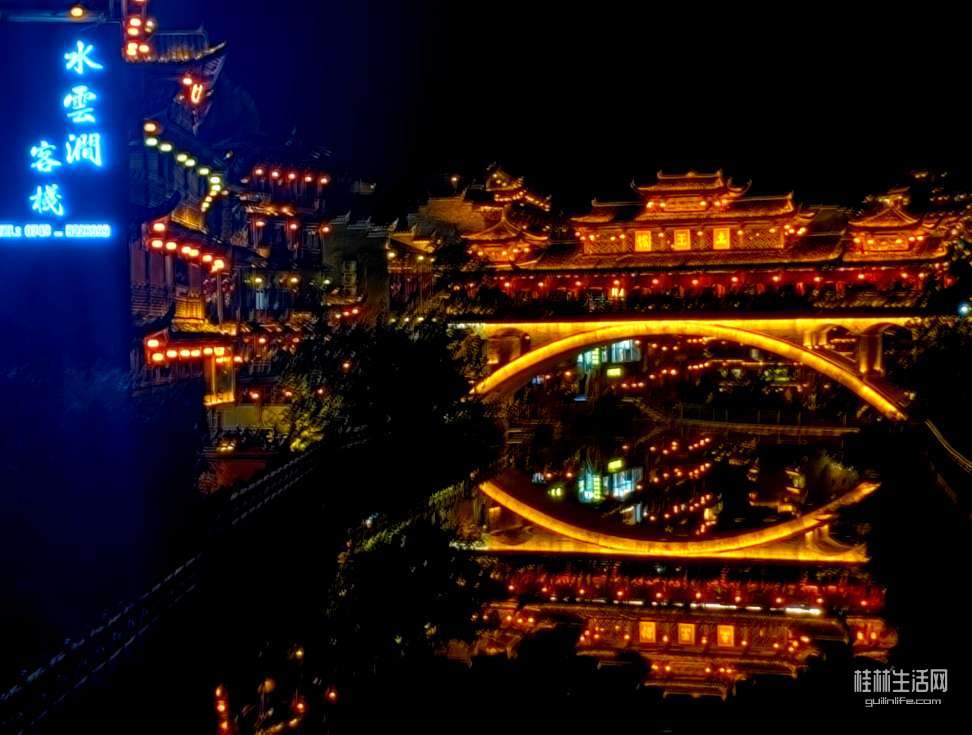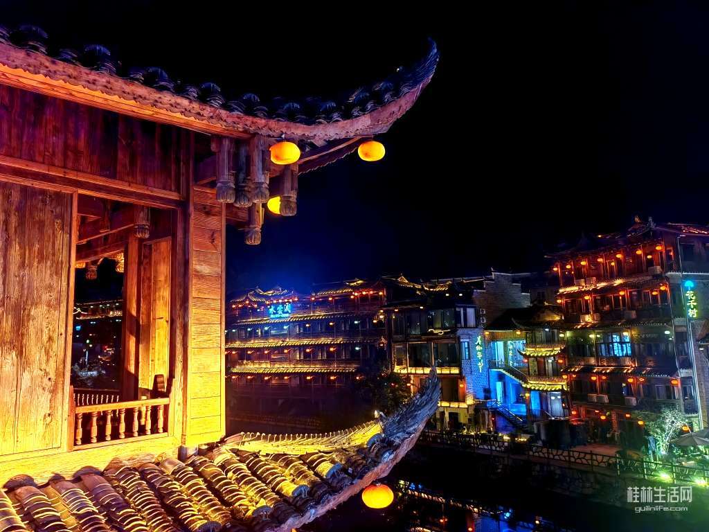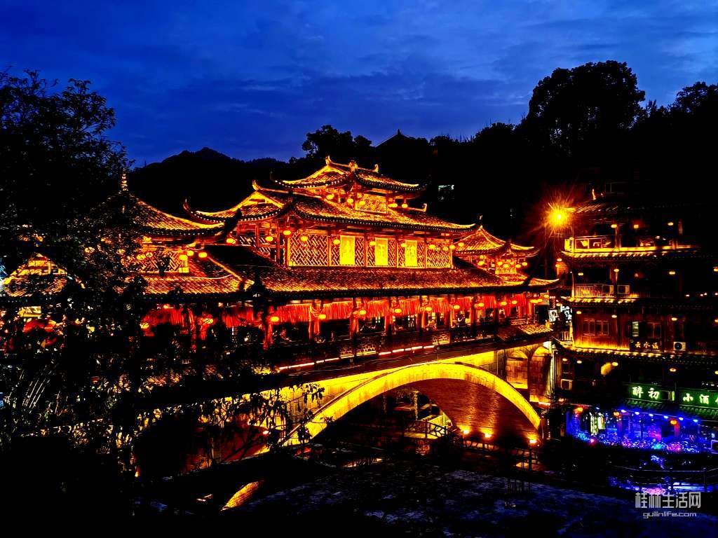 夜幕降临,整个芙蓉镇灯火辉,比大白天热闹,镇里的戏台表演土家族舞蹈,夜空中漂着土家族歌舞神曲,夹杂着街头艺人的唱歌声,一时间人声鼎沸,买卖兴隆,好一派繁荣景向,我们吃饱喝足,四下闲逛,土酒上头,我们走在街上,脚有点飘,一路兴致勃勃,欣赏芙蓉镇绝美夜景。