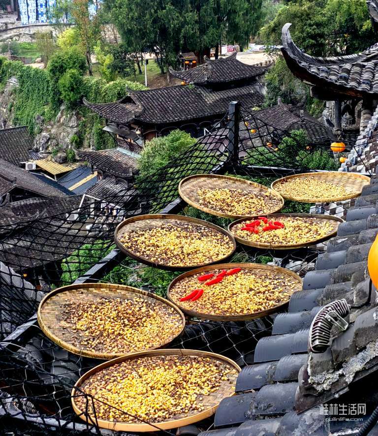 秋天游芙蓉镇,树木仍然葱绿,天气仍热,穿着尚薄,丝毫感觉不出一丝秋意,这屋顶上的晒红,让人怀秋