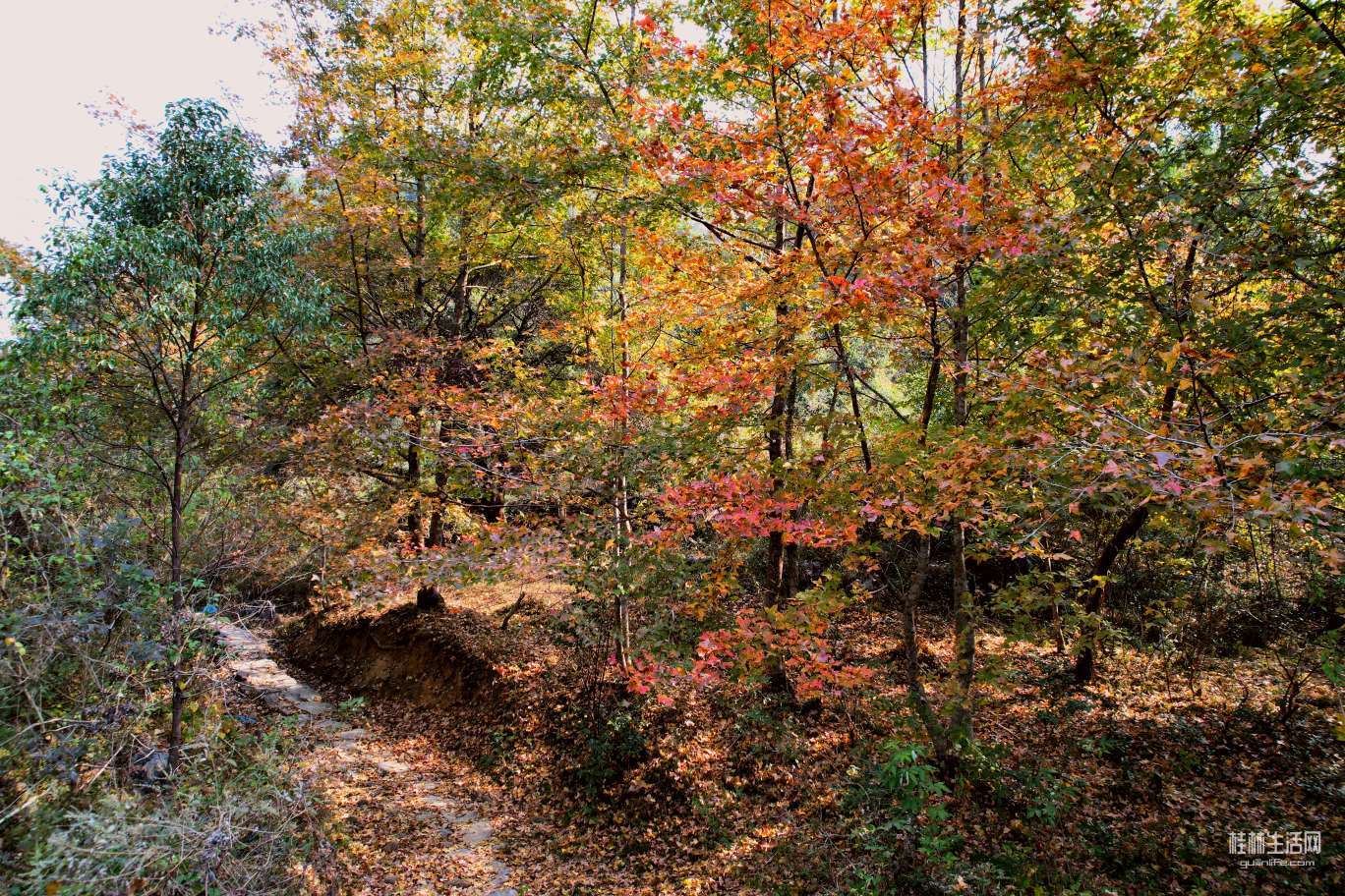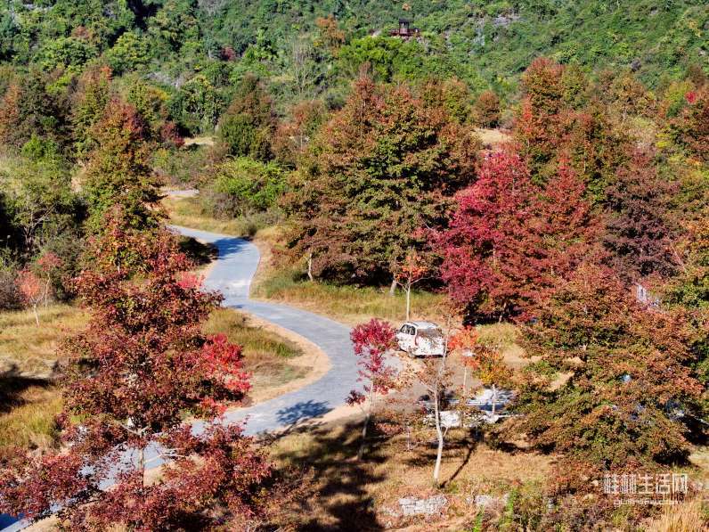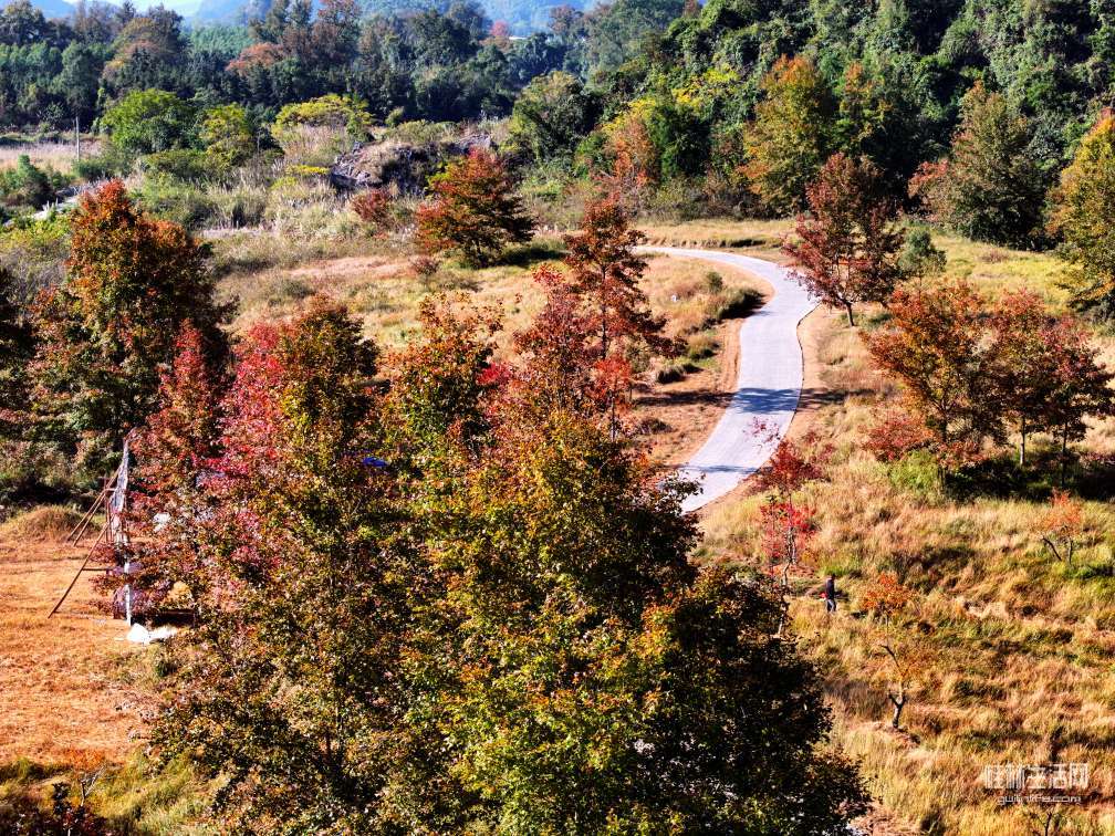 从穿岩屯徒步到红枫谷,大概1公里左右的古道路程。如果非要把车开到红枫谷,可以绕着穿岩屯后山茶树坪新修的水泥路进入红枫谷,目前红枫谷各种设施已俱全,顺着标识的指路牌行进即可。
