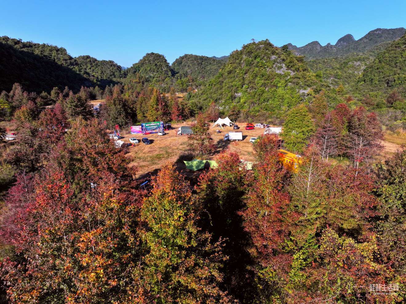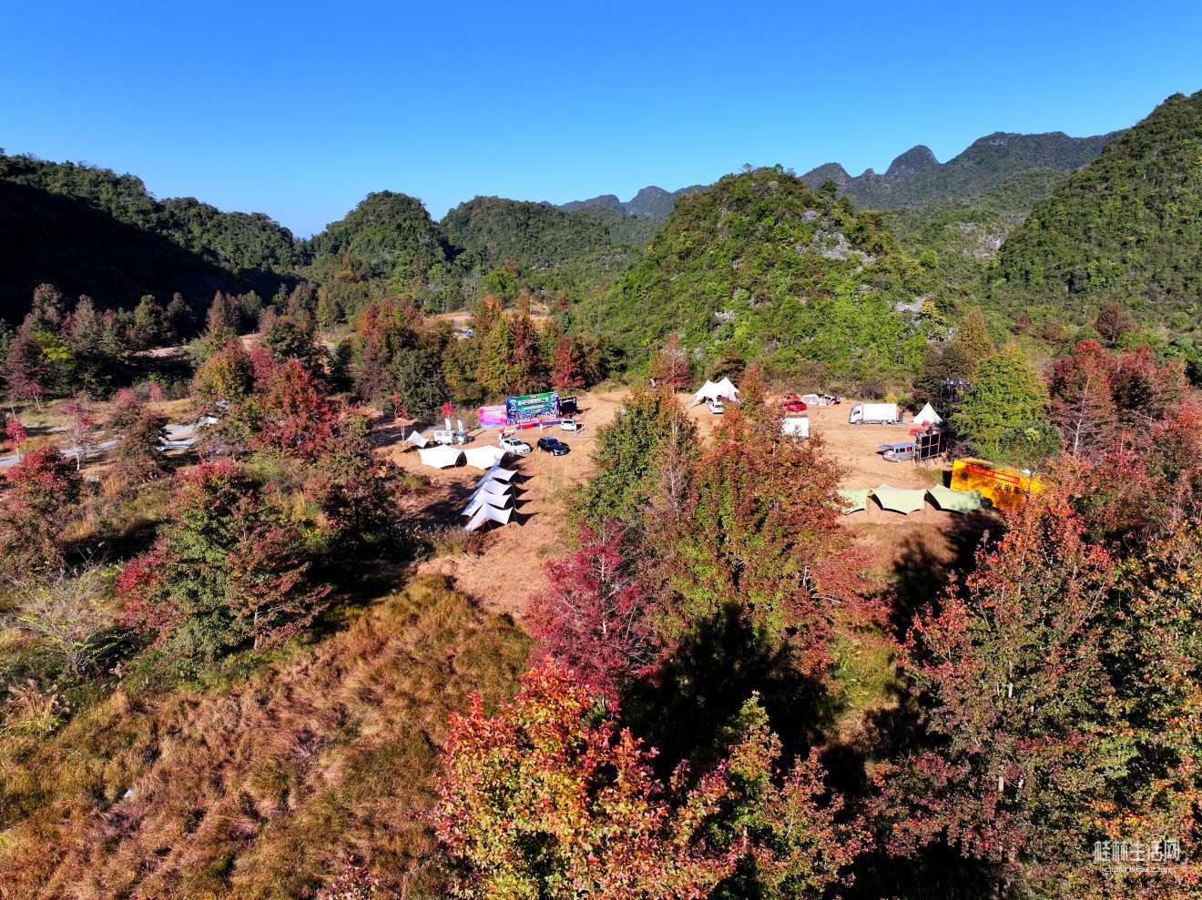 澄澈的蓝天之下,穿岩的喀斯特岩壁透着青灰古韵,大草坪铺展如绿绒毯,而红枫谷的枫叶正以最热烈的姿态,为这片土地晕染出浓墨重彩的秋景,将“洋气”与意境揉进每一寸风光里。
