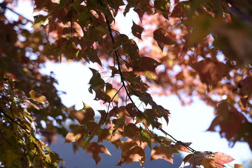 枫叶的红层次分明,浅红似霞、深红如焰,偶尔夹杂着几株金黄的银杏与墨绿的常松,红黄绿三色交织,宛如印象派画家笔下的油画,随手一拍都是无需滤镜的大片。