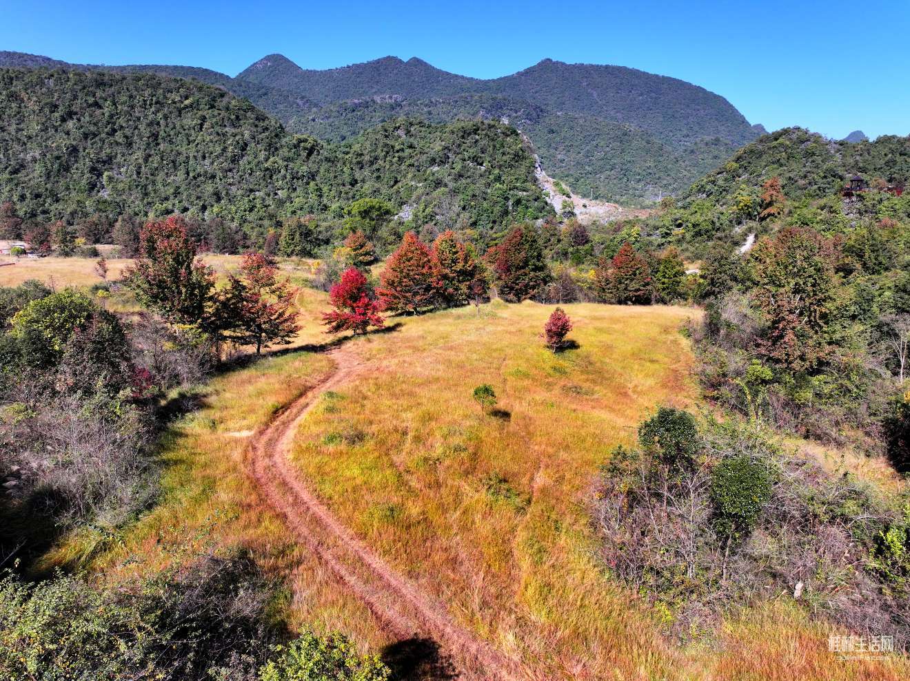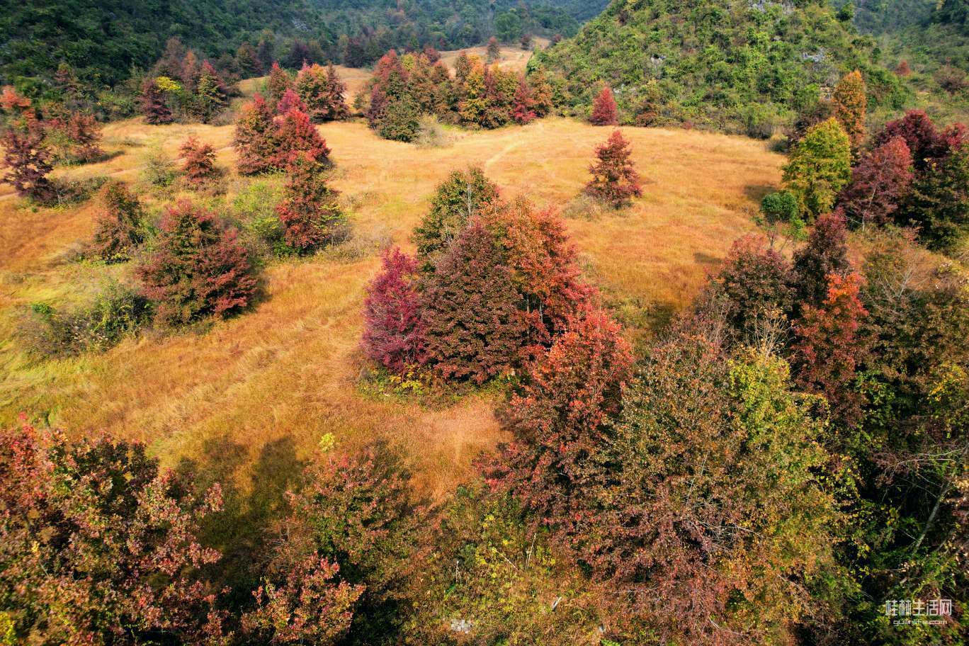 藏在永福的红枫童话,秋光染谷,诗意漫坪,永福百寿穿岩大草坪红枫谷又是一年红枫如火。