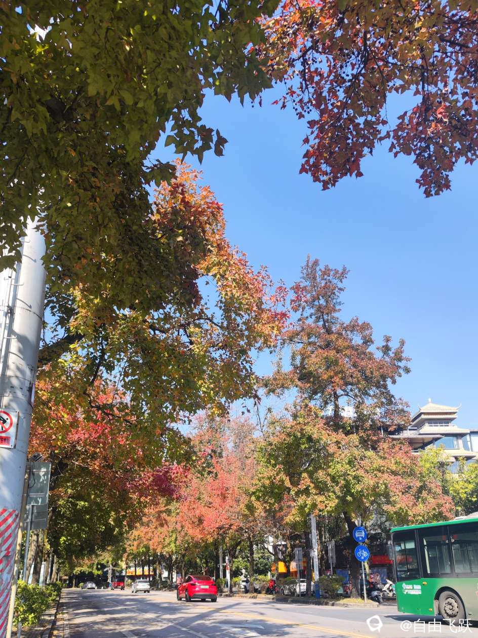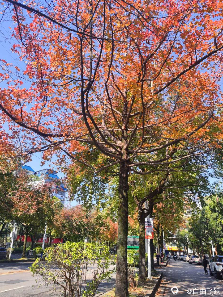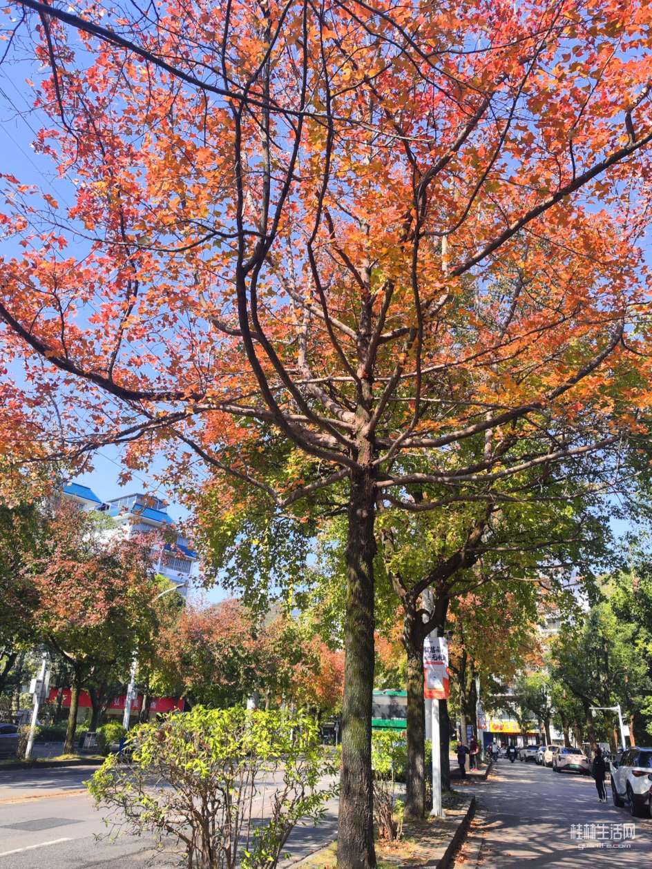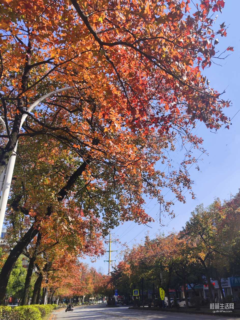 寒潮一到西凤路成了无敌枫景路,这里是桂林市区第二条枫景路,第一条是三里店七星路,两条路的红枫各有千秋,在冬季像两道火龙,飞舞穿梭,成为网红打卡点,西凤路的红枫一年打卡一次,一次比一次壮观,这是因为枫树都在茁壮成长,一年又一年,杆更粗,叶更多,色更艳。