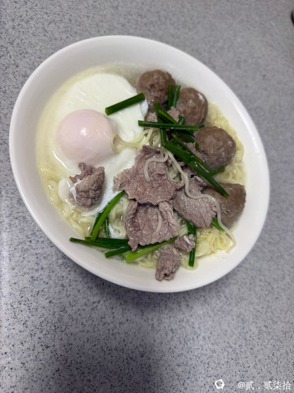 天气睛好,早餐就煮牛肉面!牛肉丸大火烧开,小火煮出汤味,后下面条,牛肉最后用汤水烫一下出锅!吃着有点爆汁的潮汕牛肉丸,味道非常赞!这感觉就像冬天晒太阳一样