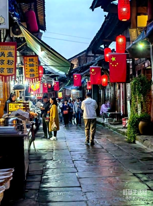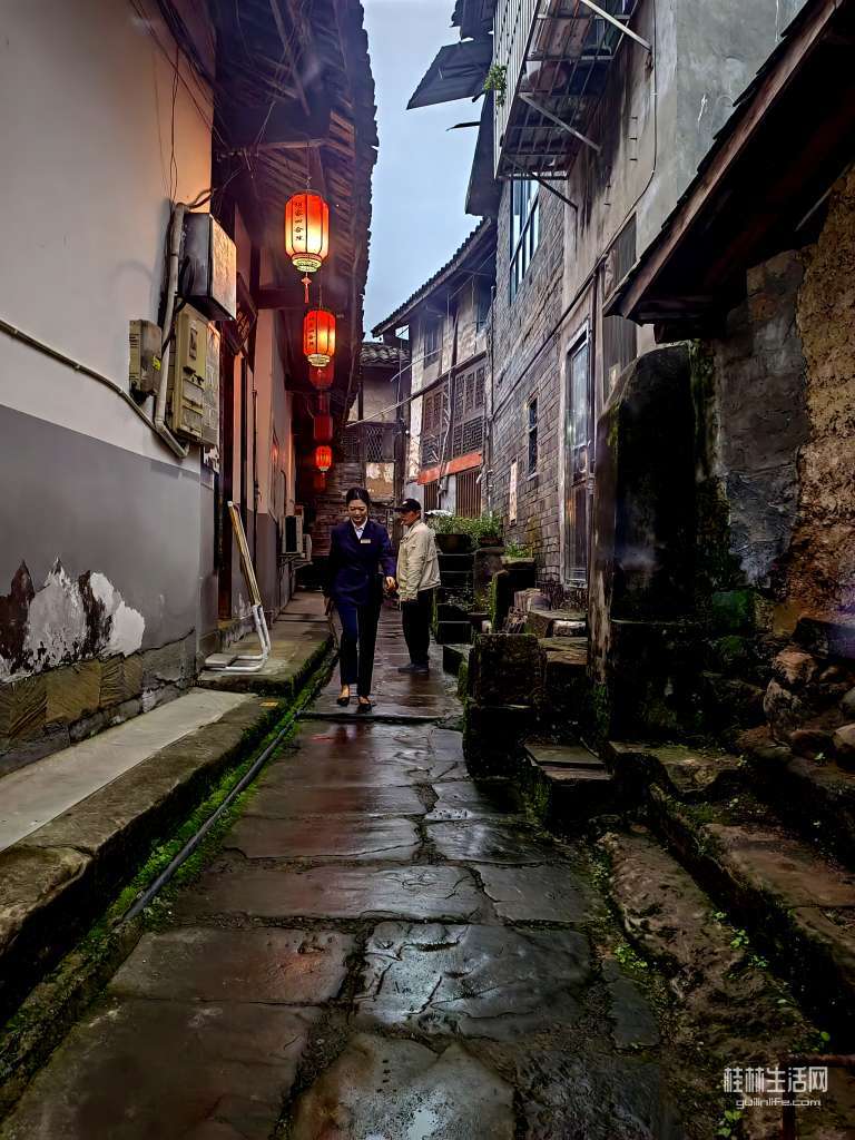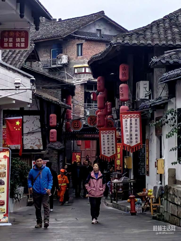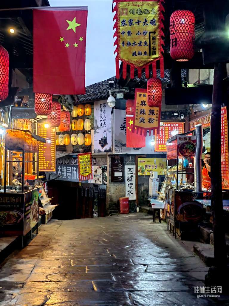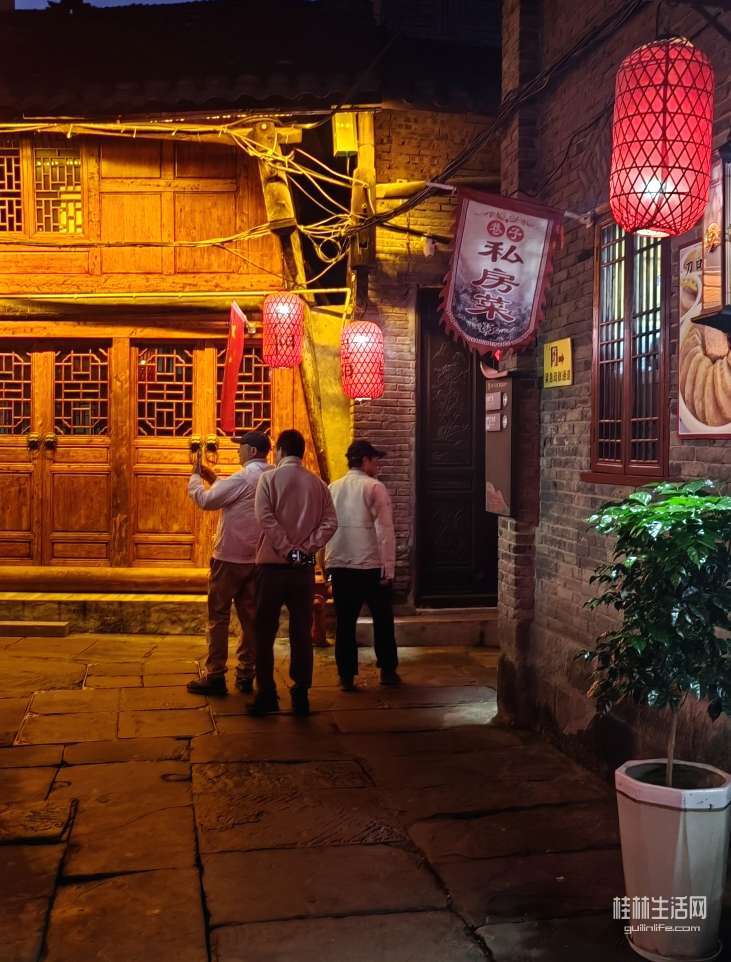 夜幕降临,小镇的灯光夜景很美,我们找了一家私家味馆,在标准宴席菜单里,挑了四个不辣的莱,喝当地精酿糯米酒,可惜那几个菜不好吃,酒也剩了些,可见川菜里辣椒是灵魂,没辣椒的川菜实在是淡水!