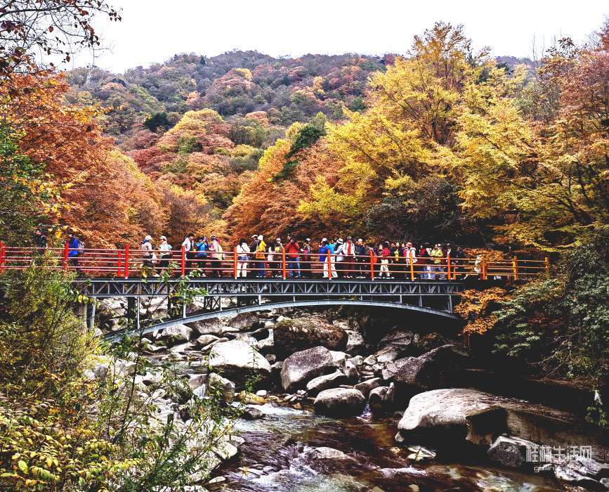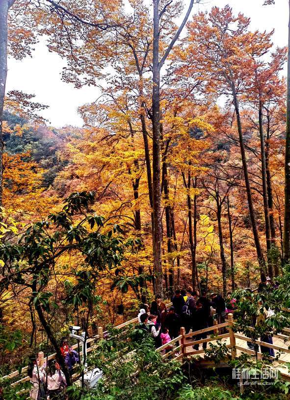米仓山森林公园主要由天然杂树林画廊,天炉山,和黑熊沟组成,公园里的大片枫树,青冈木和红杉树高大挺拔,红得似火,红得鲜艳,山林里的木板步道绕山伸展,森林里的负离子高,空气清新,人随步道缓步而行,宛如人在世外。