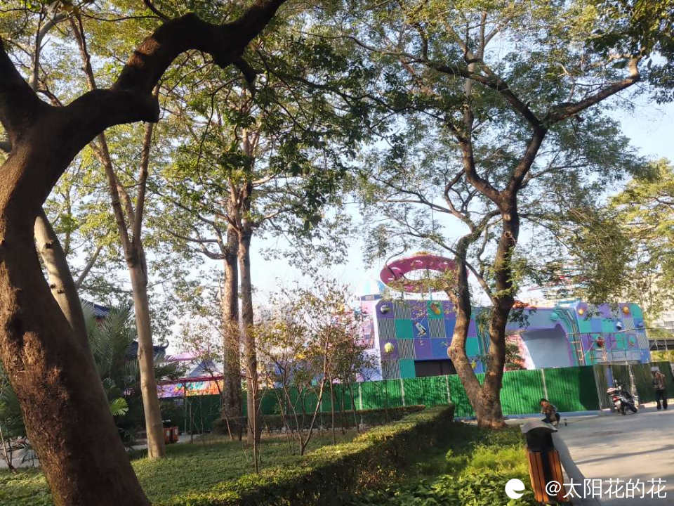 中山公园现在正在改造中,新建了一个很大的游乐场,听说明年才开始营业……