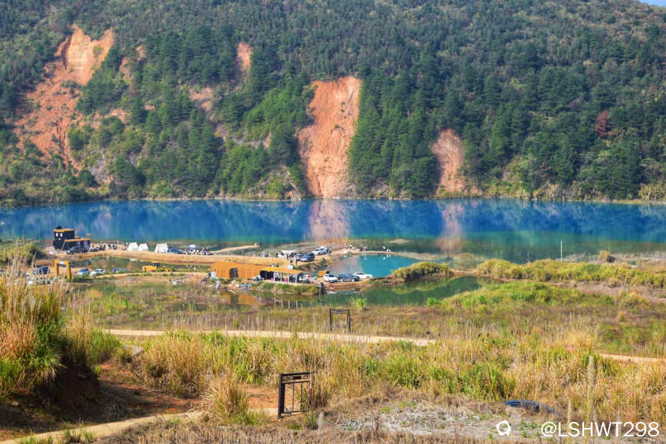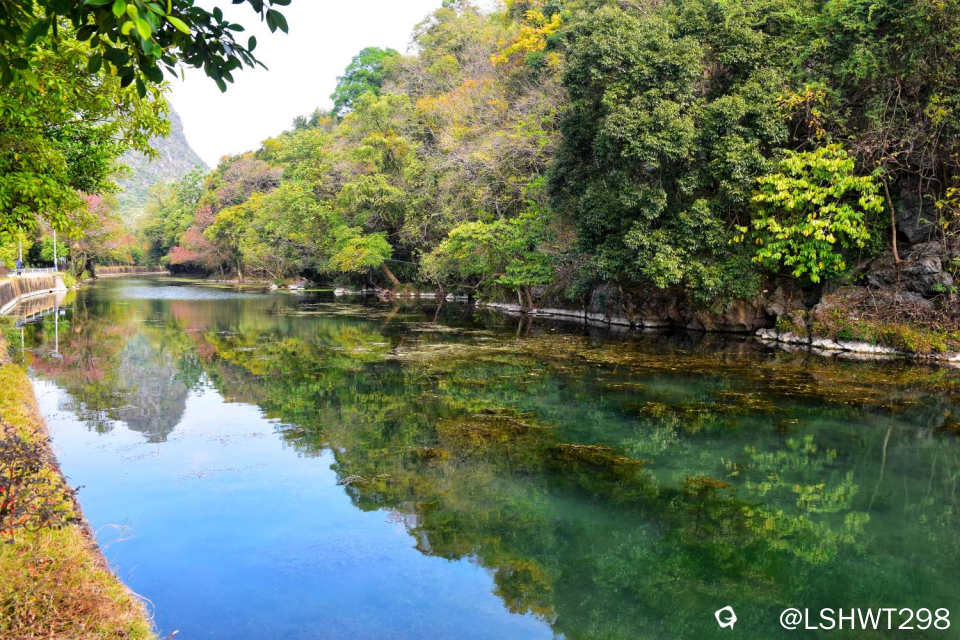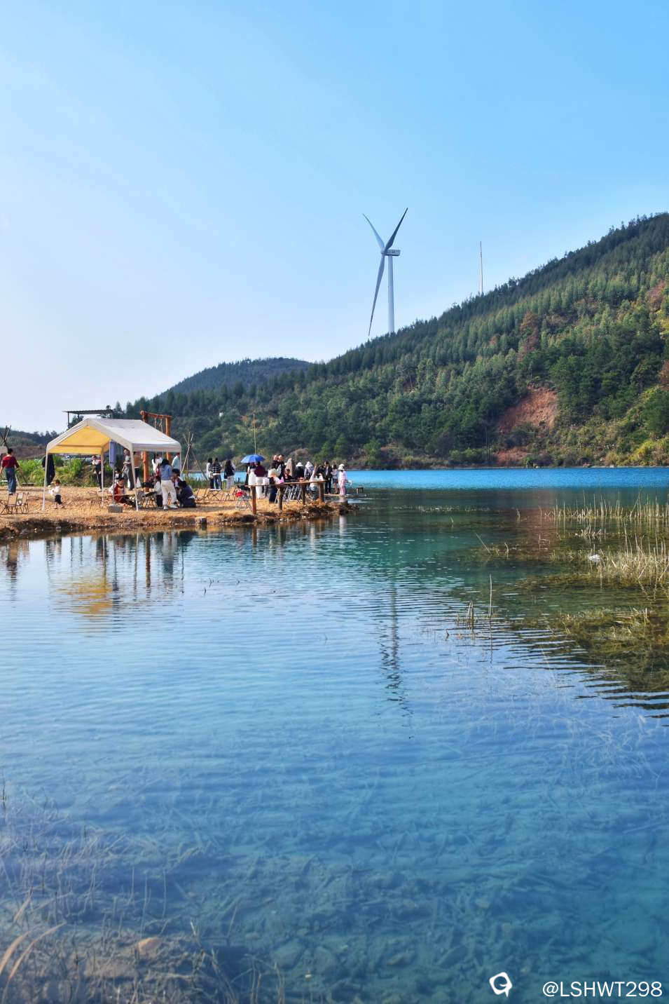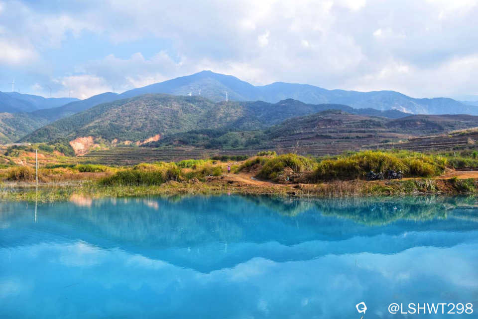 可达蓝湖。按上图车行方向约6~7公里,一个非常值得打卡的小众秘境,可以称得上是广西版的赛里木湖、可可托海。。。